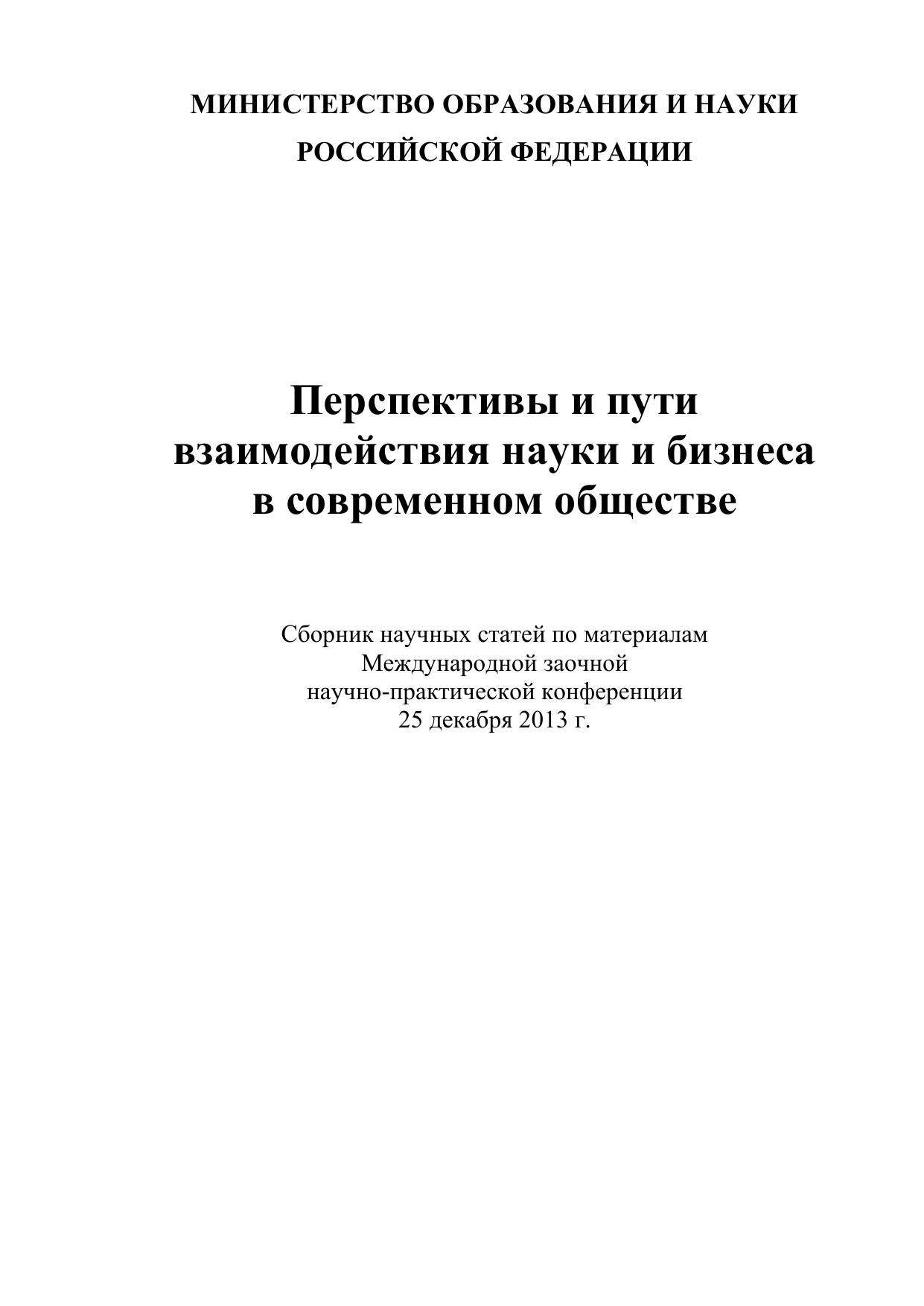 Перспективы и пути взаимодействия науки и бизнеса в современном обществе: сборник научных статей по материалам участников Международной заочной научно-практической конференции