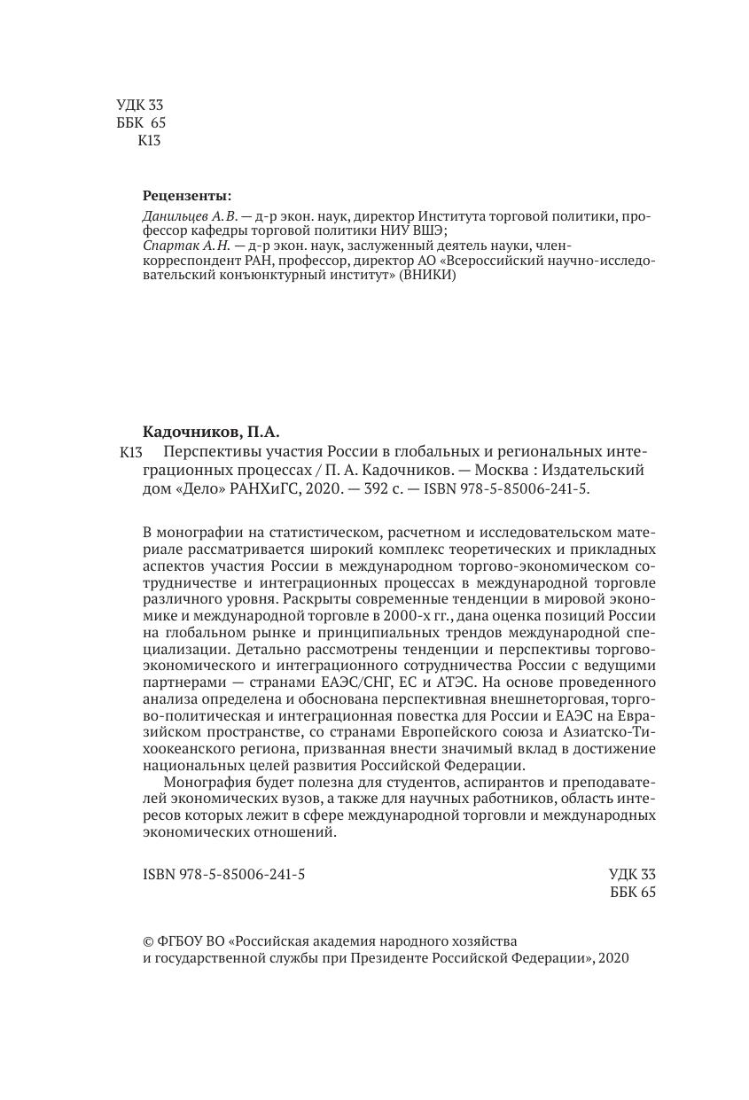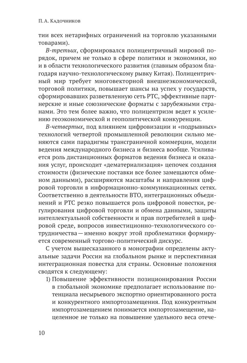 В монографии на статистическом, расчетном и исследовательском материале рассматривается широкий комплекс теоретических и прикладных аспектов участия России в международном торгово-экономическом сотрудничестве и интеграционных процессах в международной торговле различного уровня. Раскрыты современные тенденции в мировой экономике и международной торговле в 2000-х гг., дана оценка позиций России на глобальном рынке и принципиальных трендов международной специализации. Детально рассмотрены тенденции и перспективы торгово-экономического и интеграционного сотрудничества России с ведущими партнерами — странами ЕАЭС/СНГ, ЕС и АТЭС. На основе проведенного анализа определена и обоснована перспективная внешнеторговая, торгово-политическая и интеграционная повестка для России и ЕАЭС на Евразийском пространстве, со странами Европейского союза и Азиатско-Тихоокеанского региона, призванная внести значимый вклад в достижение национальных целей развития Российской Федерации. Монография будет полезна для студентов, аспирантов и преподавателей экономических вузов, а также для научных работников, область интересов которых лежит в сфере международной торговли и международных экономических отношений.