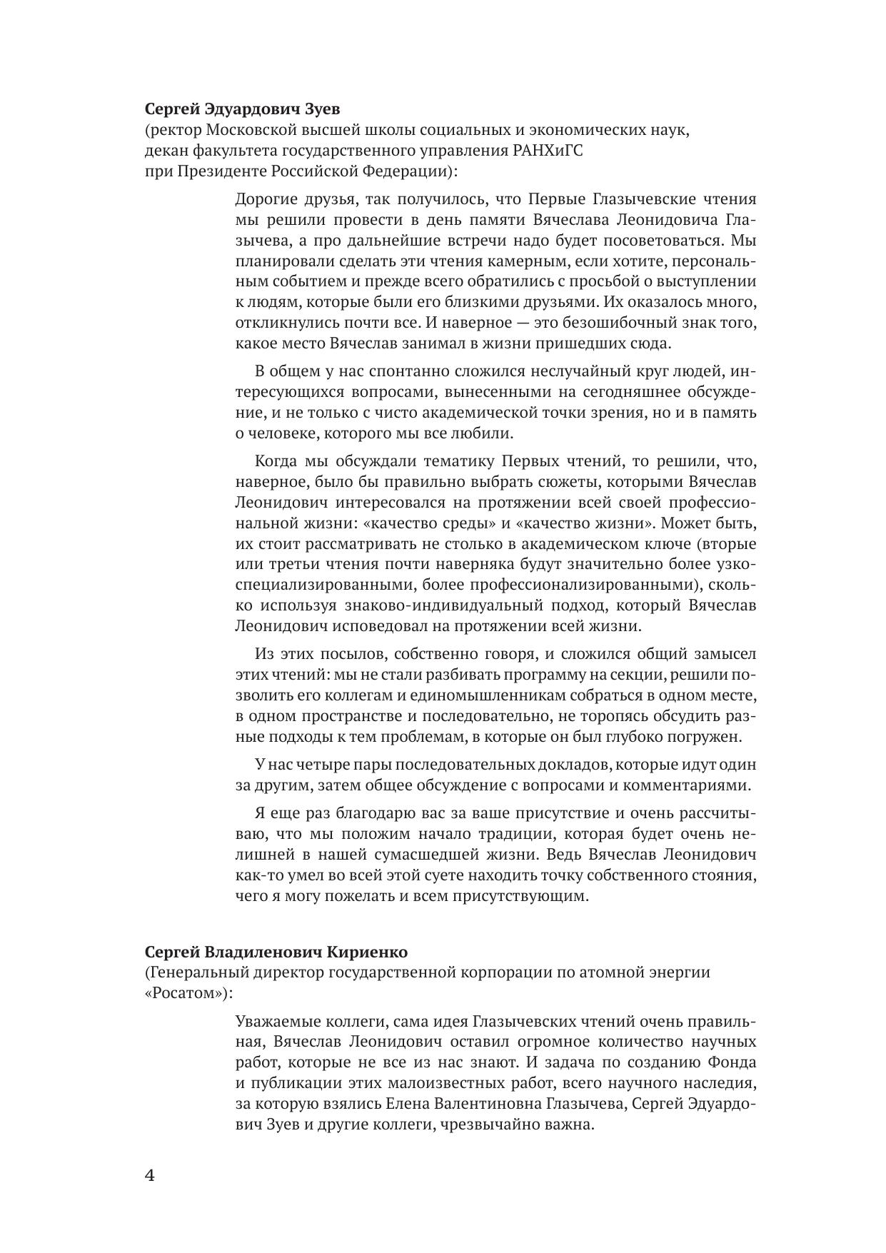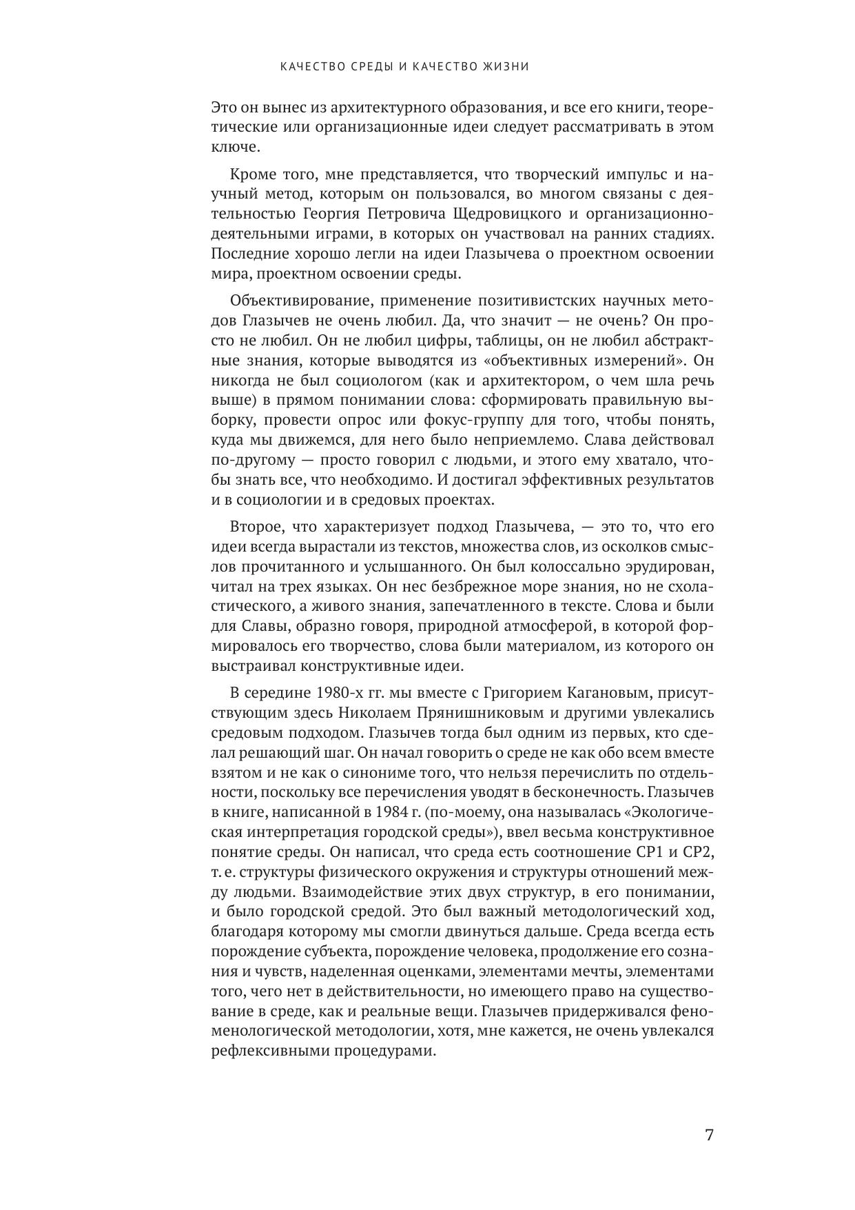 В издании представлены доклады участников Первых Глазычевских чтений, посвященные двум темам, составлявшим исследовательский интерес Вячеслава Леонидовича Глазычева в последние годы: «Качество среды» и «Качество жизни». Публикуемые тексты и дискуссия, развернувшаяся вокруг них, могут быть полезны не только ученым — специалистам в области урбанистики, но и широкому кругу читателей
