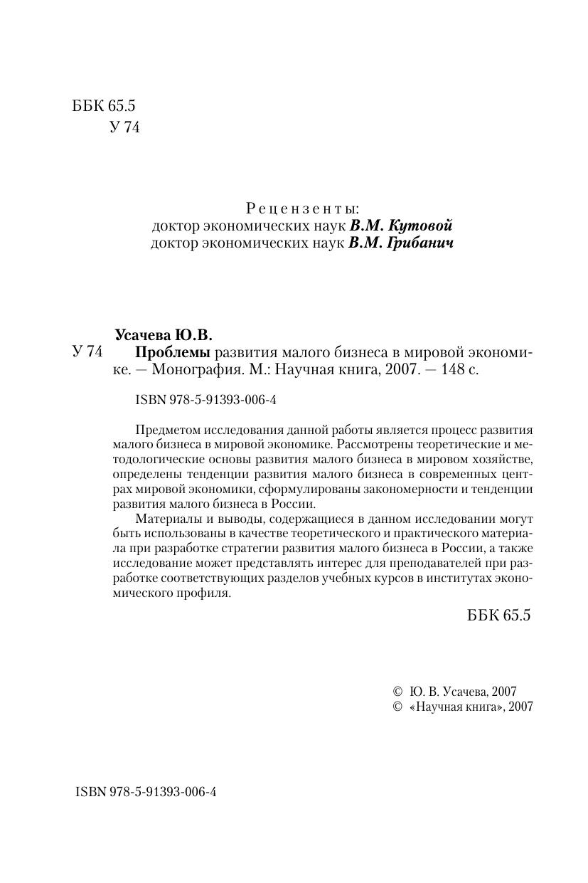 Проблемы развития малого бизнеса в мировой экономике. Монография