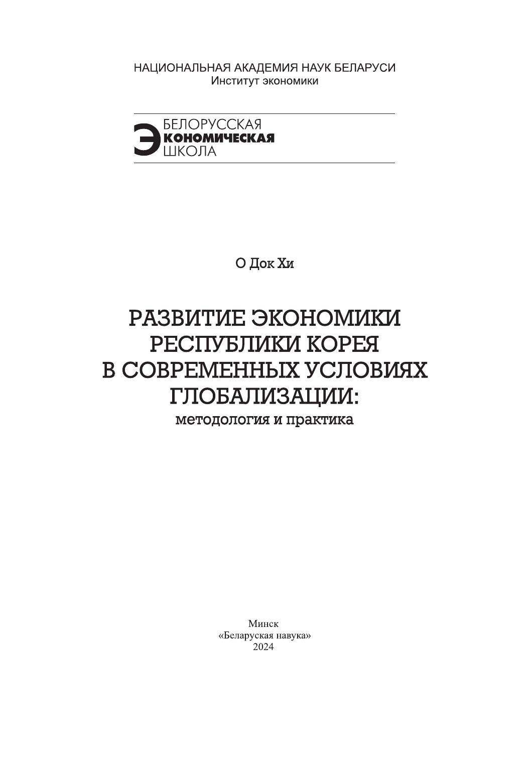 Развитие экономики Республики Корея в современных условиях глобализации: методология и практика