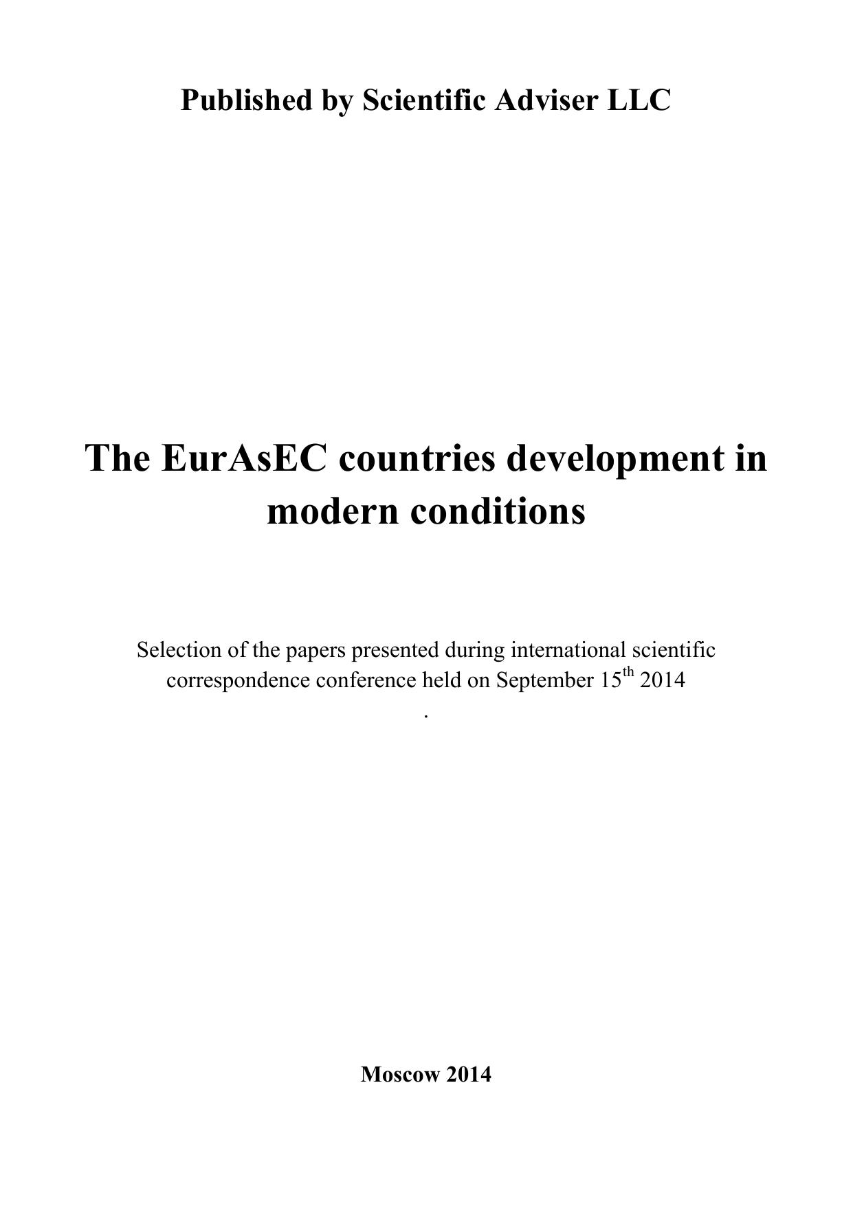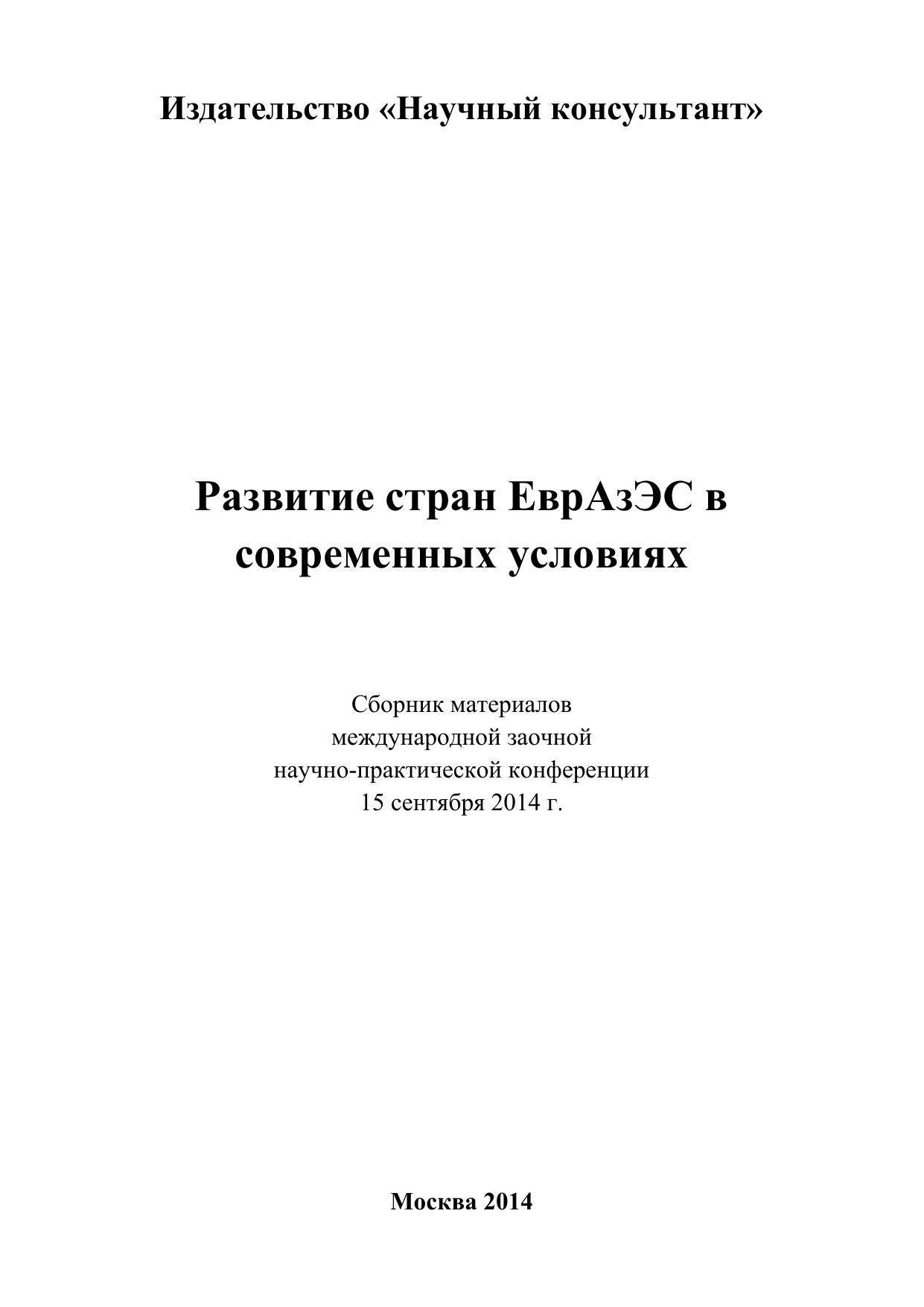 Развитие стран ЕврАзЭС в современных условиях: сборник статей по материалам участников международной заочной научно-практической конференции