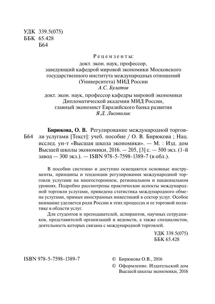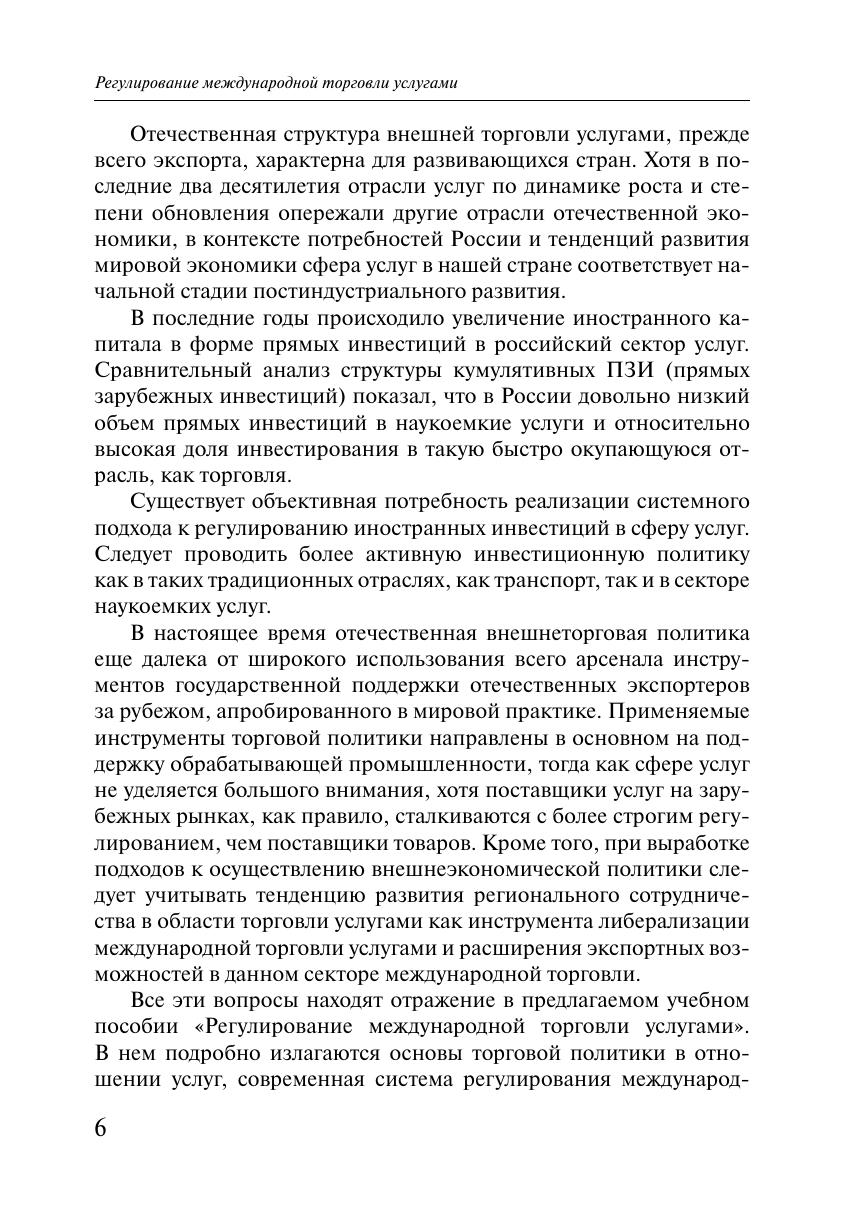 В пособии системно и доступно освещаются основные инструменты, принципы и тенденции регулирования международной торговли услугами на многостороннем, региональном и национальном уровнях. Подробно рассмотрены практические аспекты международной торговли услугами, приведена статистика международного обмена услугами, прямых иностранных инвестиций в сектор услуг. Особое внимание уделяется роли России в этих процессах и ее торговой политике в области услуг. Для студентов и преподавателей, аспирантов, научных сотрудников, представителей организаций и ведомств, а также специалистов, деятельность которых связана с международной торговлей.