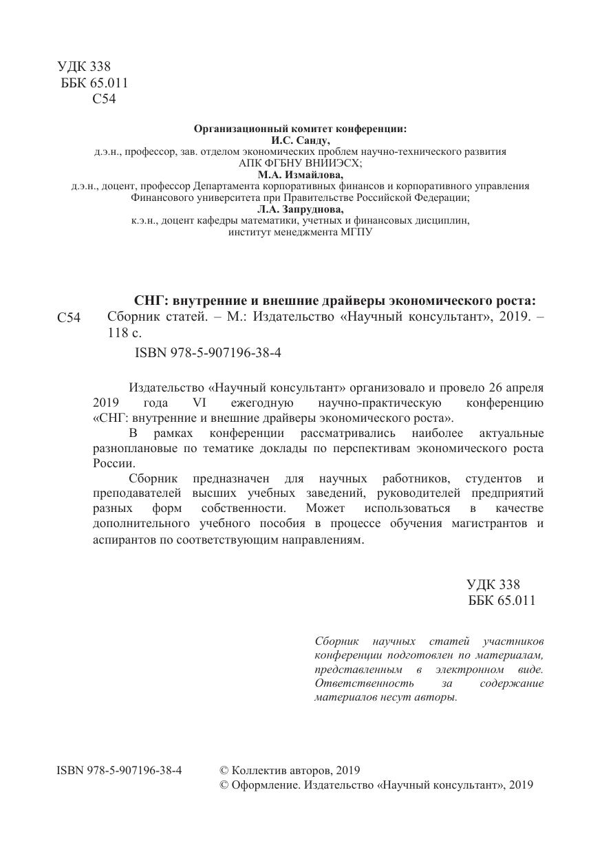 Издательство «Научный Консультант» организовало и провело 26 апреля 2019 года VI научно-практическую конференцию «СНГ: внутренние и внешние драйверы экономического роста».