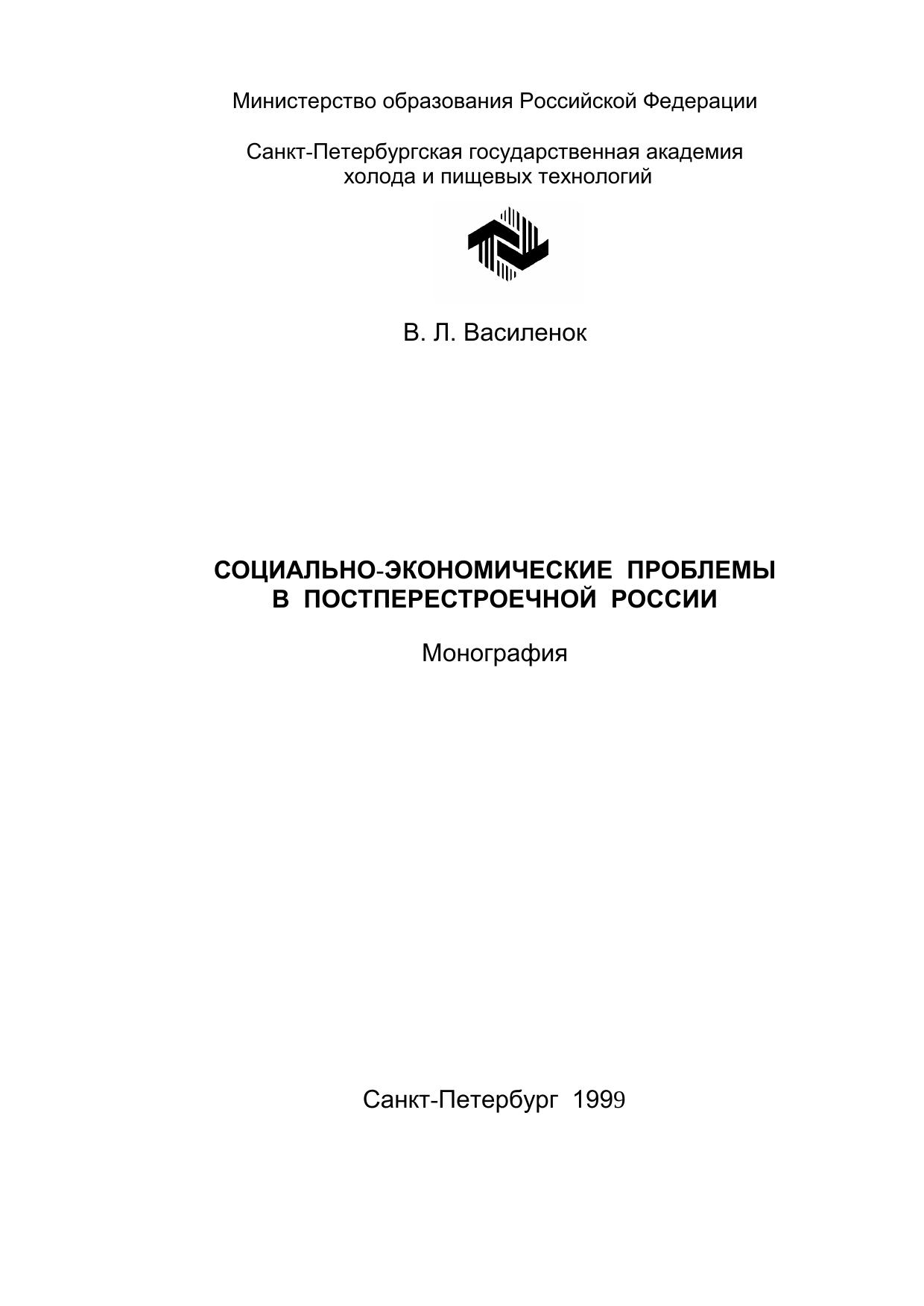 Социально-экономические проблемы постперестроечной России: Монография