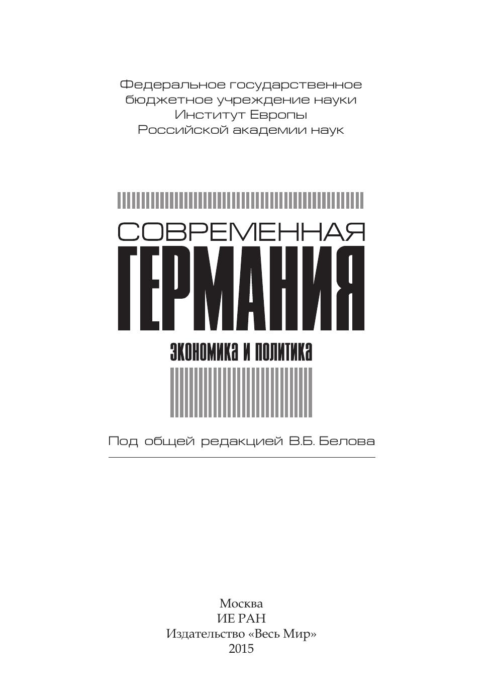 Немецкая хозяйственная и партийно-политическая модель за последние пятнадцать лет претерпела ряд значительных изменений, в первую очередь, в рамках масштабных реформ, начатых в 2003 г. Во многом это позволило относительно быстро преодолеть последствия мирового финансового кризиса 2008—2010 гг. Несмотря на определенные успехи, в Германии сохраняется необходимость дальнейшего реформирования различных социально-экономических сфер. В предлагаемой вниманию читателей коллективной монографии подробно рассматриваются различные аспекты экономики и политики современной ФРГ — одного из основных партнеров России в Евросоюзе и лидера западноевропейских интеграционных процессов. Нынешняя Германия привлекает к себе внимание заинтересованного читателя с точки зрения возможности найти ответы на актуальные вопросы о перспективах трансформации рыночной модели, изменениях в партийно-политических механизмах, реакции правящих партий на внутренние и внешние вызовы и поиске немецким государством своего места в постоянно меняющемся глобализирующемся мире.