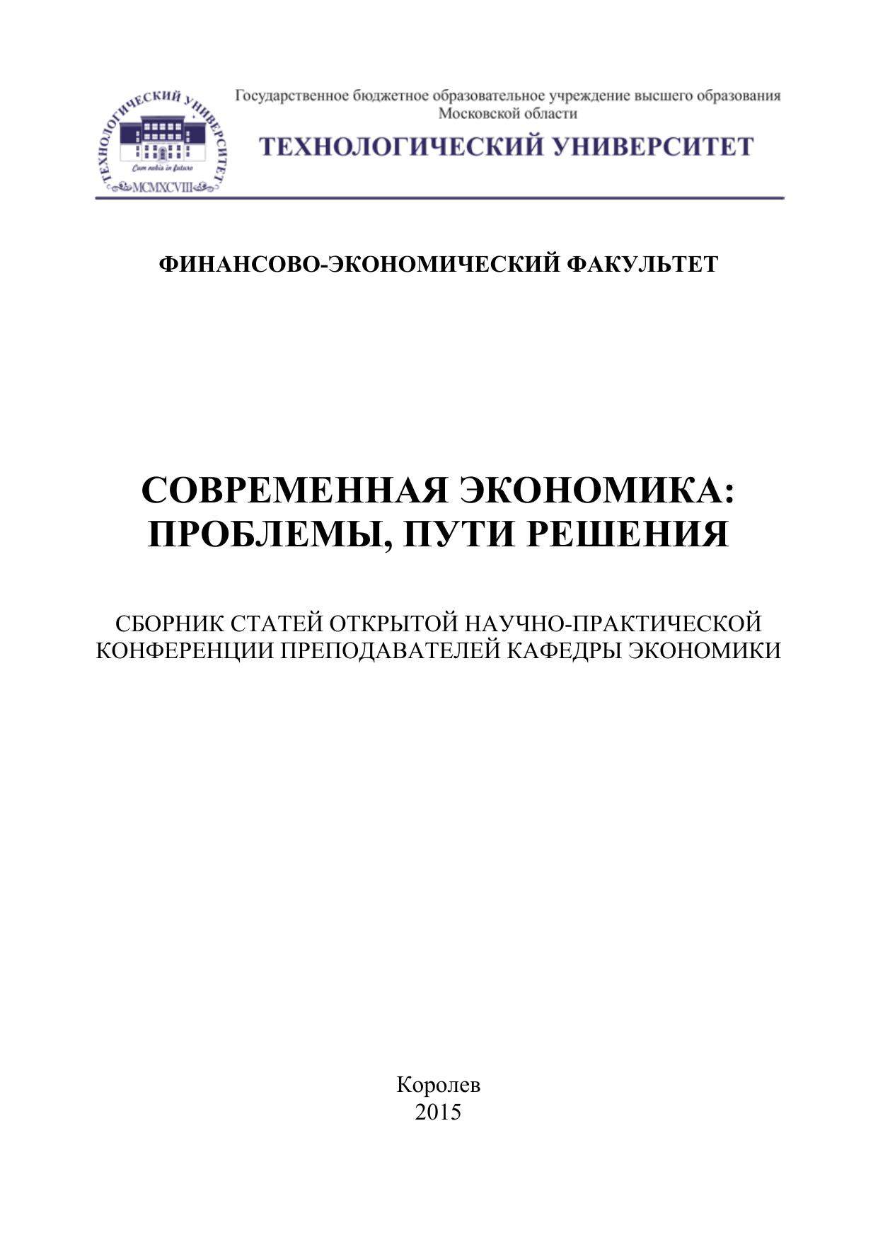 Современная экономика: проблемы, пути решения: сборник статей открытой научно-практической конференции преподавателей кафедры экономики