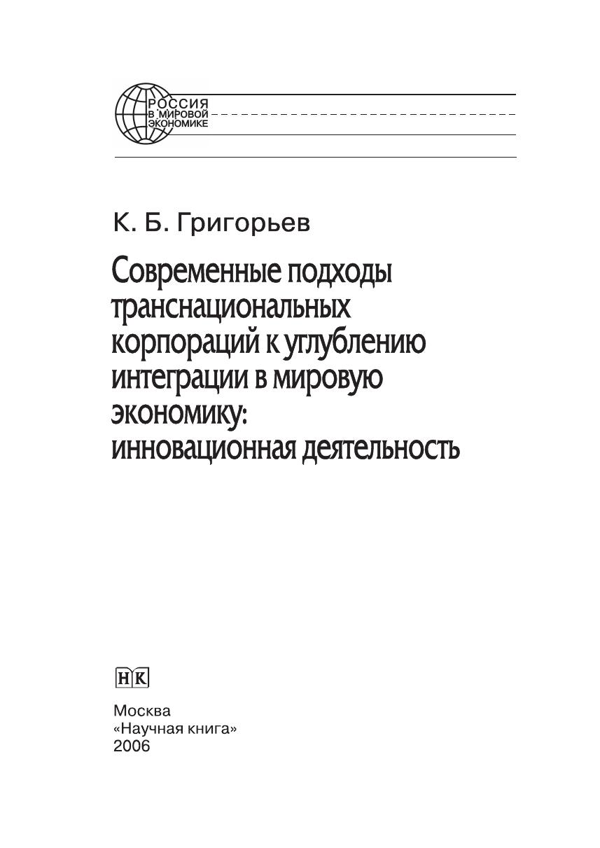 Современные подходы транснациональной корпорации к углублению интеграции в мировую экономику: инновационная деятельность
