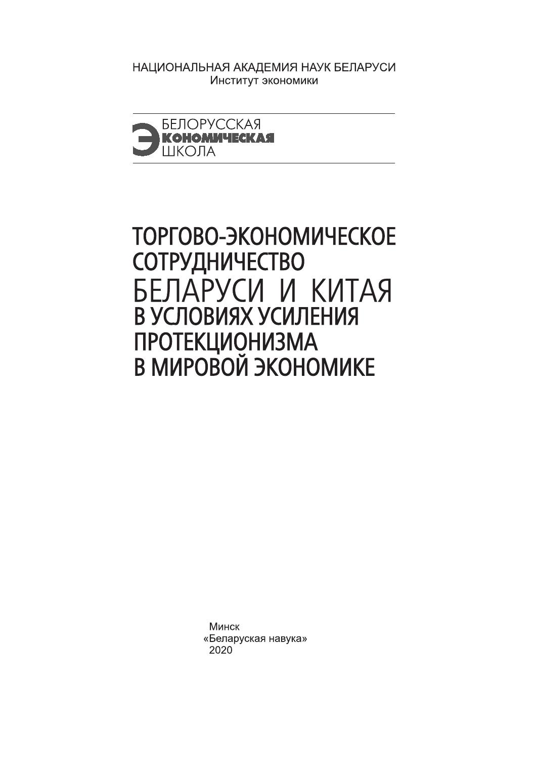 Торгово-экономическое сотрудничество Беларуси и Китая в условиях усиления протекционизма в мировой экономике