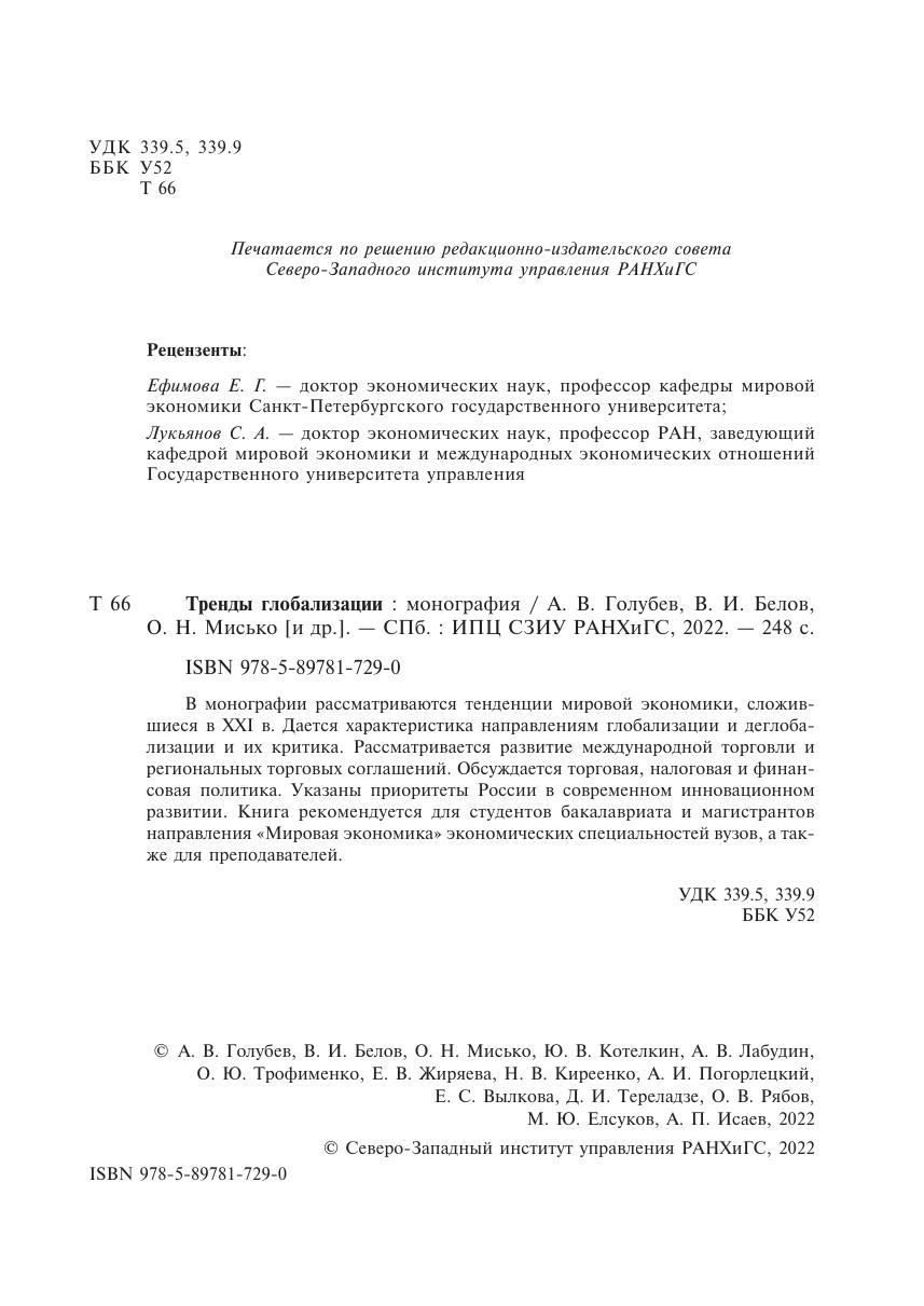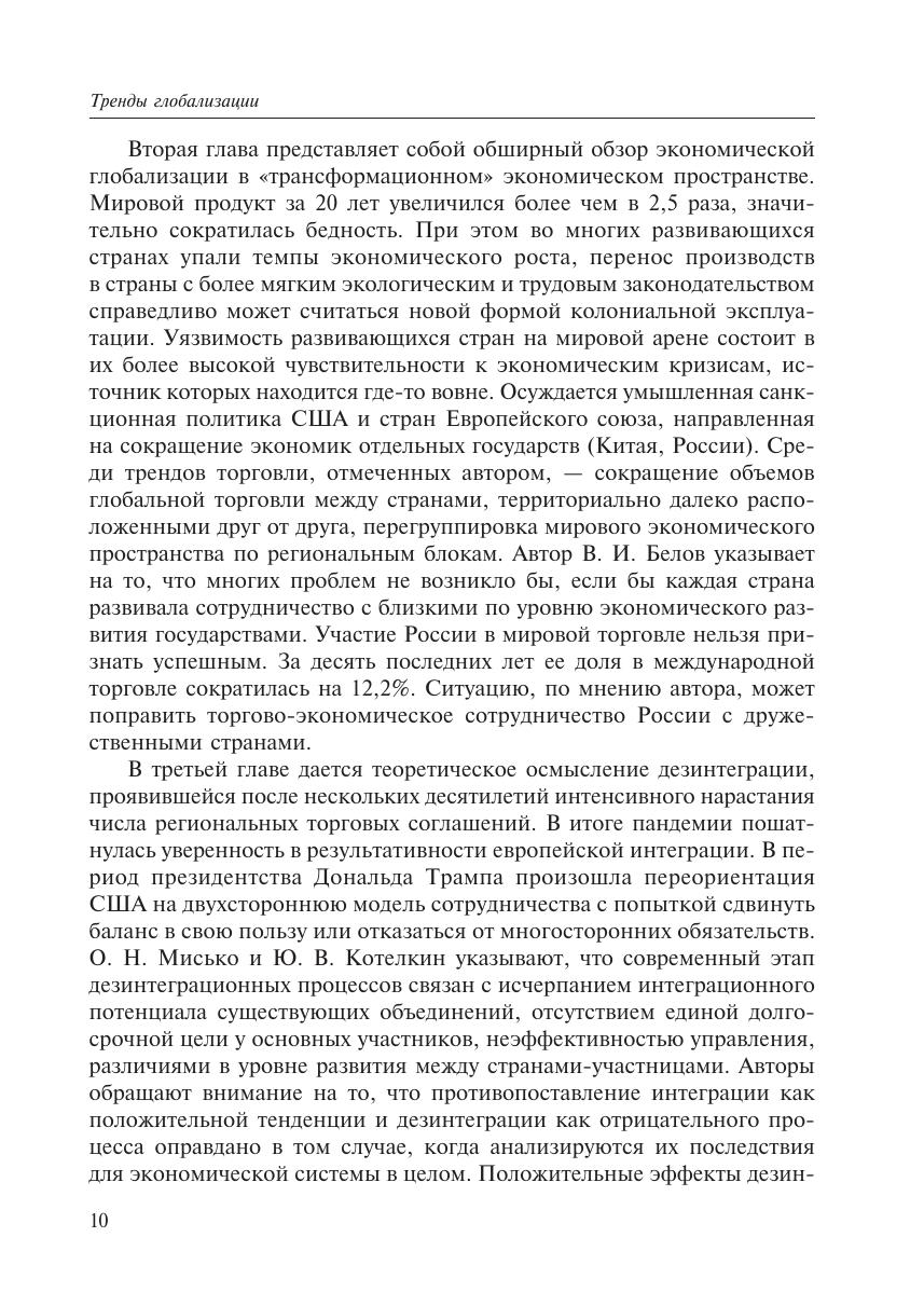 В монографии рассматриваются тенденции мировой экономики, сложившиеся в XXI в. Дается характеристика направлениям глобализации и деглобализации и их критика. Рассматривается развитие международной торговли и региональных торговых соглашений. Обсуждается торговая, налоговая и финансовая политика. Указаны приоритеты России в современном инновационном развитии. Книга рекомендуется для студентов бакалавриата и магистрантов направления «Мировая экономика» экономических специальностей вузов, а также для преподавателей.