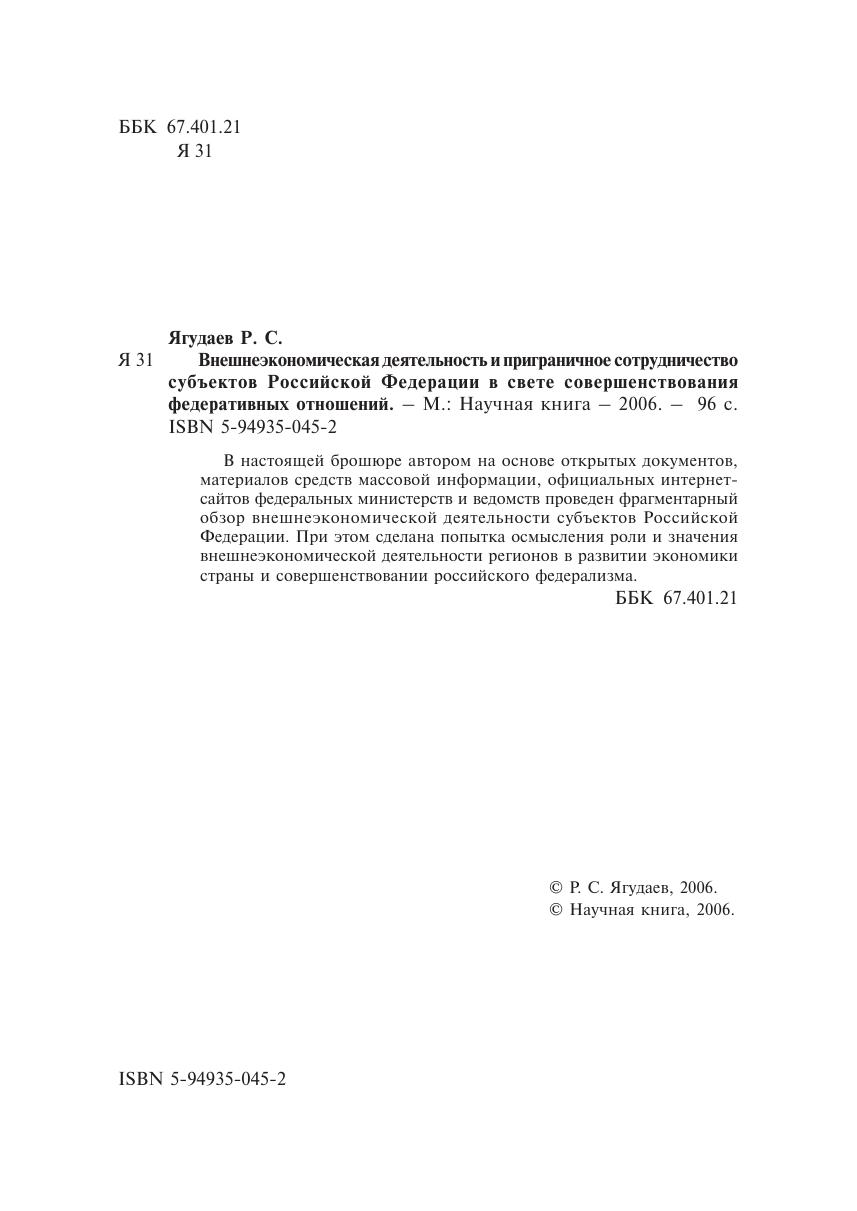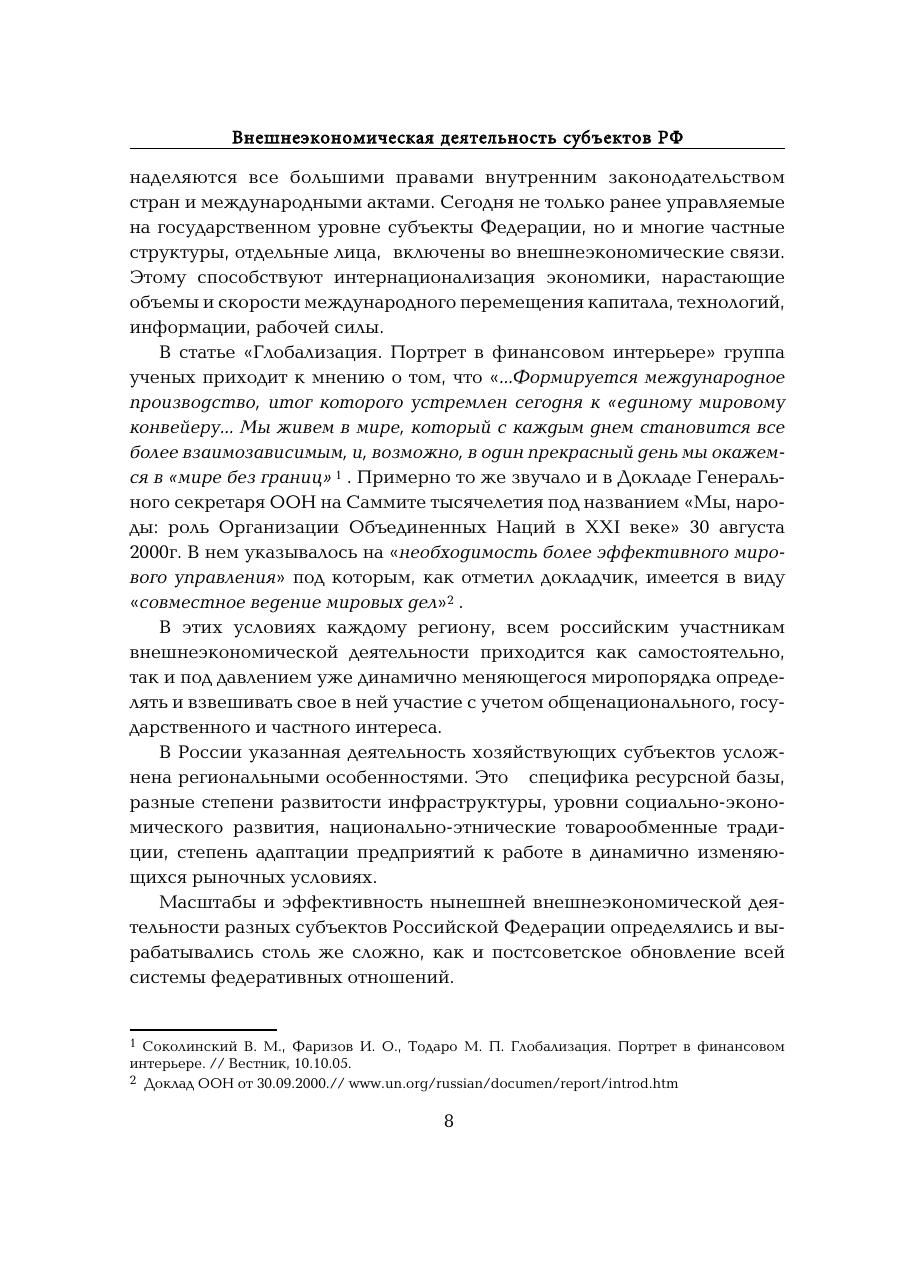 В настоящей брошюре автором на основе открытых документов, материалов средств массовой информации, официальных интернет-сайтов федеральных министерств и ведомств проведен фрагментарный обзор внешнеэкономической деятельности субъектов Российской Федерации. При этом сделана попытка осмысления роли и значения внешнеэкономической деятельности регионов в развитии экономики страны и совершенствовании российского федерализма.