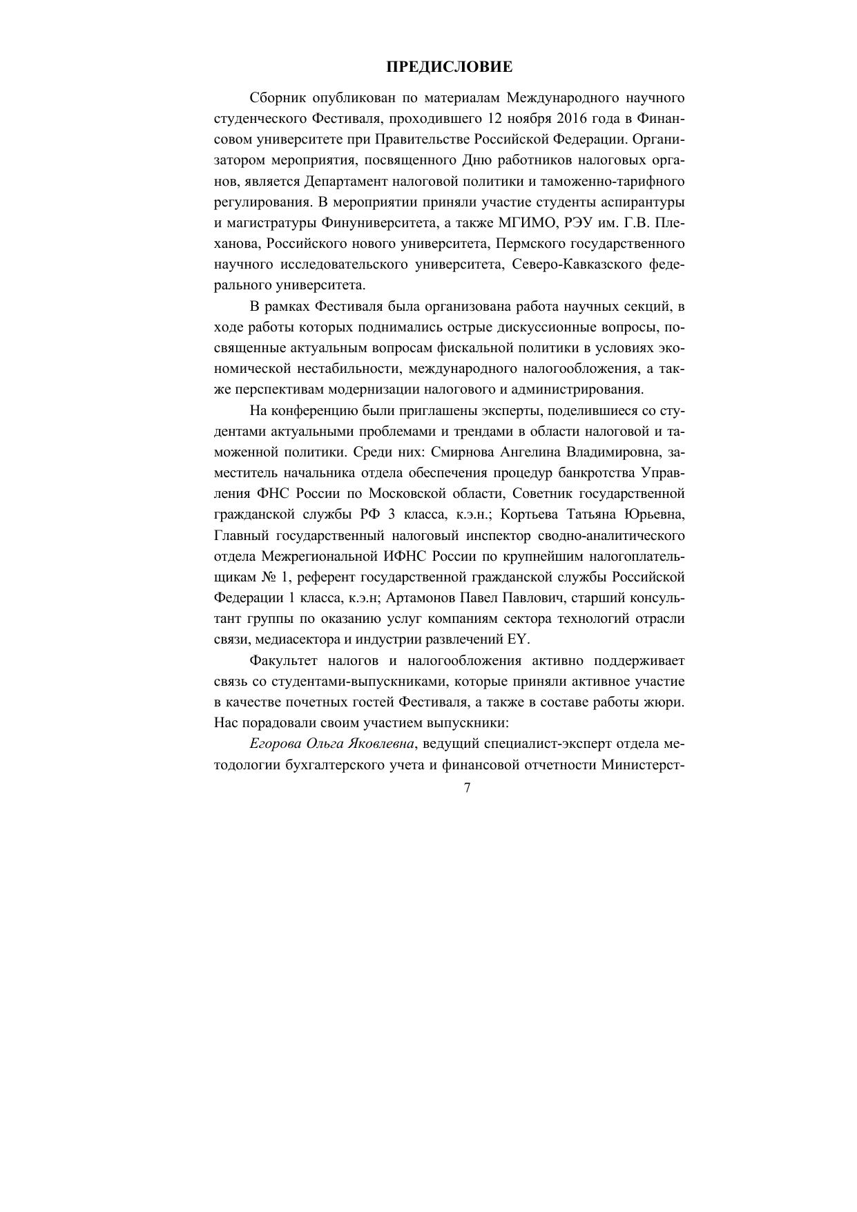Сборник опубликован по материалам Международного научного студенческого фестиваля, проходившего 12 ноября 2016 года в Финансовом университете при Правительстве Российской Федерации. Организатором мероприятия, посвященного Дню работников налоговых органов, является Департамент налоговой политики и таможенно-тарифного регулирования.