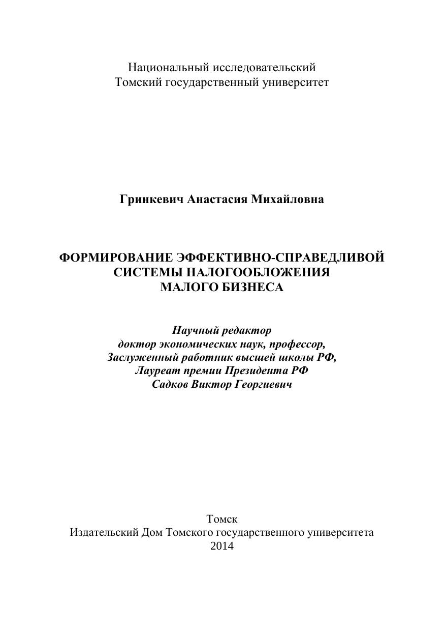 Формирование эффективно-справедливой системы налогообложения малого бизнеса
