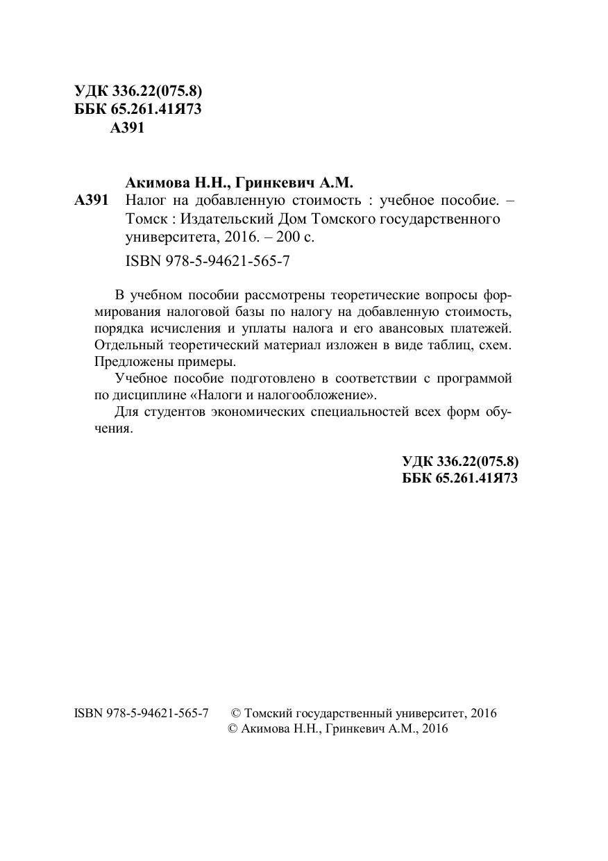 В учебном пособии рассмотрены теоретические вопросы формирования налоговой базы по налогу на добавленную стоимость, порядка исчисления и уплаты налога и его авансовых платежей. Отдельный теоретический материал изложен в виде таблиц, схем. Предложены примеры. Учебное пособие подготовлено в соответствии с программой по дисциплине «Налоги и налогообложение». Для студентов экономических специальностей всех форм обучения.