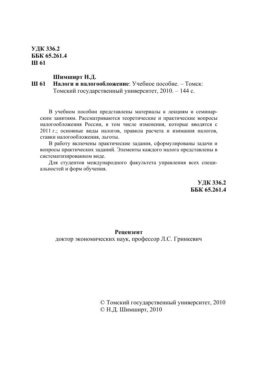 В учебном пособии представлены материалы к лекциям и семинарским занятиям. Рассматриваются теоретические и практические вопросы налогообложения России, в том числе изменения, которые вводятся с 2011 г., основные виды налогов, правила расчета и взимания налогов, ставки налогообложения, льготы. В работу включены практические задания, сформулированы задачи и вопросы практических заданий. Элементы каждого налога представлены в систематизированном виде. Для студентов международного факультета управления всех специальностей и форм обучения.