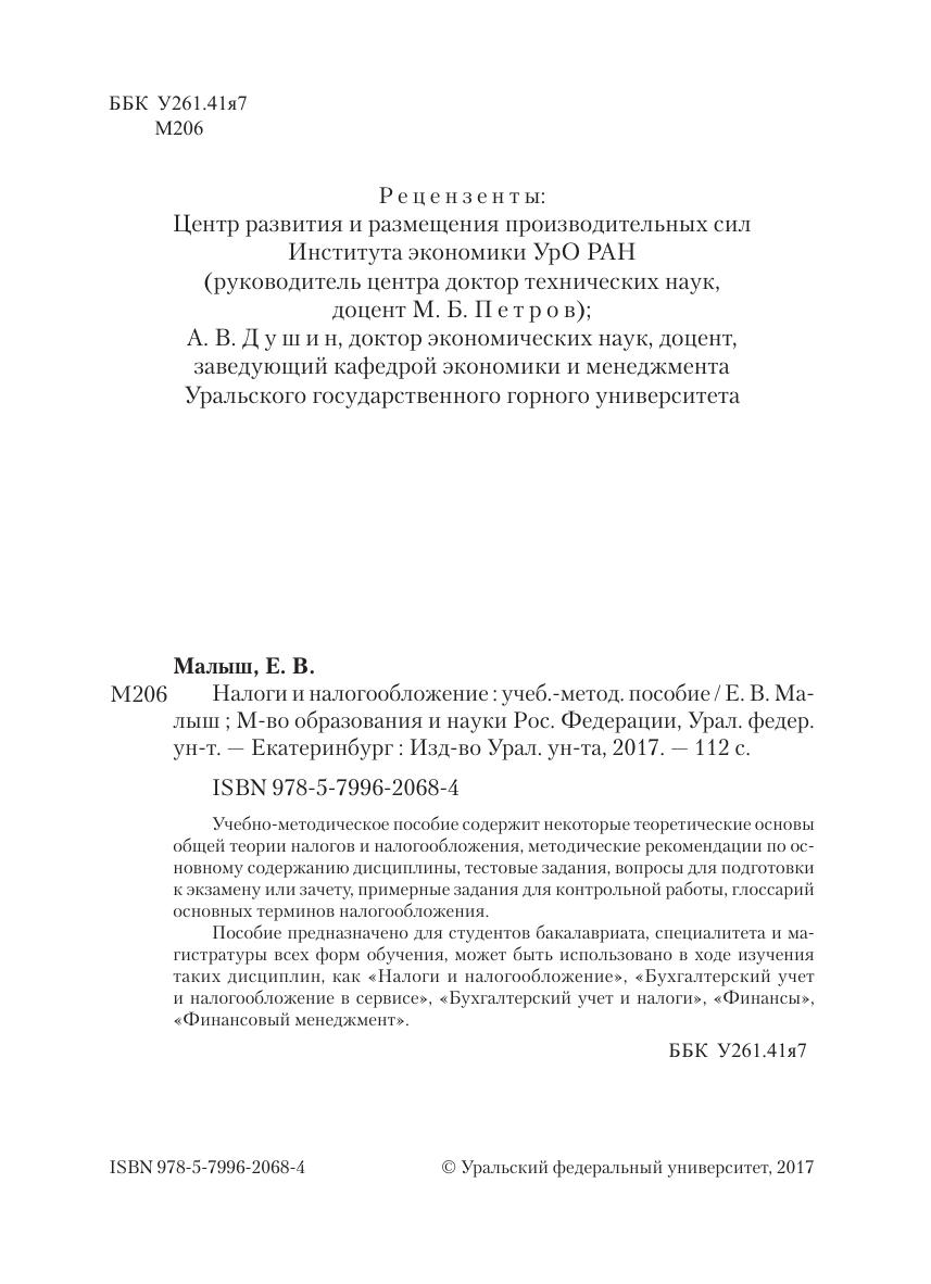 Учебно-методическое пособие содержит некоторые теоретические основы общей теории налогов и налогообложения, методические рекомендации по основному содержанию дисциплины, тестовые задания, вопросы для подготовки к экзамену или зачету, примерные задания для контрольной работы, глоссарий основных терминов налогообложения. Пособие предназначено для студентов бакалавриата, специалитета и магистратуры всех форм обучения, может быть использовано в ходе изучения таких дисциплин, как «Налоги и налогообложение», «Бухгалтерский учет и налогообложение в сервисе», «Бухгалтерский учет и налоги», «Финансы», «Финансовый менеджмент».