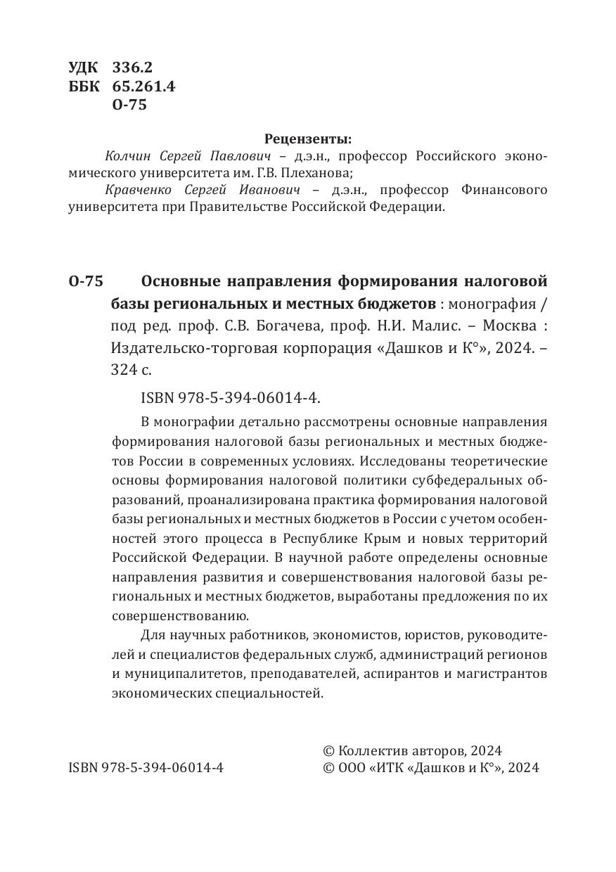 В монографии детально рассмотрены основные направления формирования налоговой базы региональных и местных бюджетов России в современных условиях. Исследованы теоретические основы формирования налоговой политики субфедеральных образований, проанализирована практика формирования налоговой базы региональных и местных бюджетов в России с учетом особенностей этого процесса в Республике Крым и новых территорий Российской Федерации. В научной работе определены основные направления развития и совершенствования налоговой базы региональных и местных бюджетов, выработаны предложения по их совершенствованию.