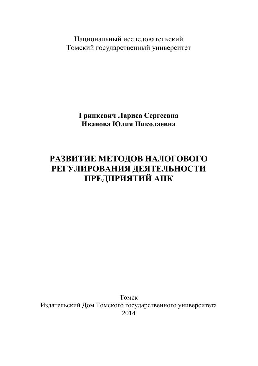 Развитие методов налогового регулирования деятельности предприятий АПК