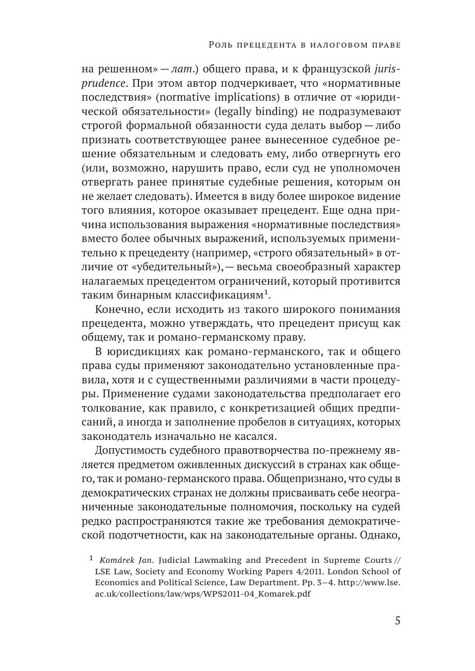 Серия Научные доклады. В работе рассмотрены существующие в теории подходы к определению понятия судебного прецедента, проведено сравнение значения прецедента и судебного правотворчества вообще в странах общего права и в России. Дается оценка тенденции к расширению правотворческих полномочий судов в современной России за счет создания Конституционного суда и фактического внедрения прецедентной системы в арбитражном судопроизводстве. На конкретных примерах иллюстрируется влияние судебной практики на формирование налогового права за рубежом и в России. По итогам анализа даются некоторые предложения по совершенствованию законодательства и правоприменительной практики в целях повышения степени определенности отечественного налогового права.