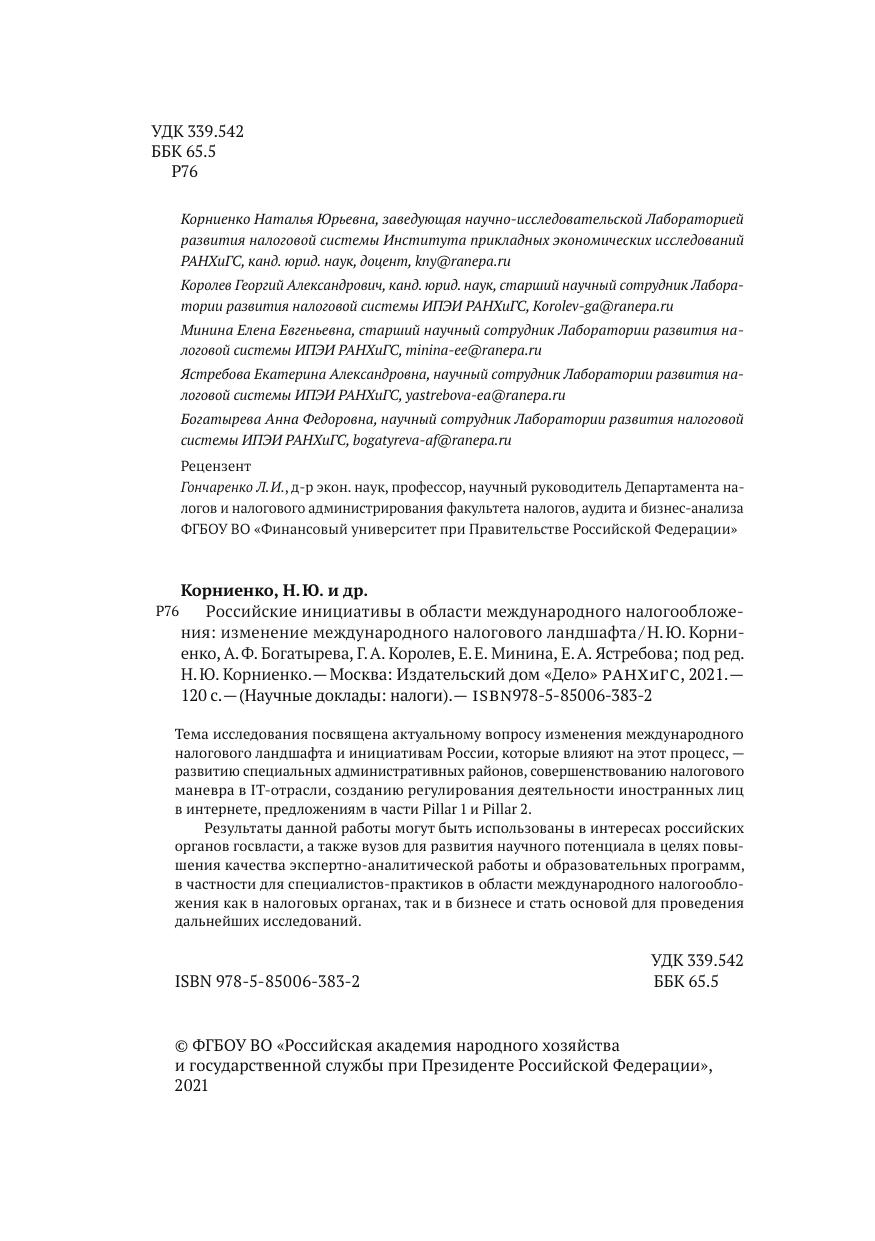 Тема исследования посвящена актуальному вопросу изменения международного налогового ландшафта и инициативам России, которые влияют на этот процесс, — развитию специальных административных районов, совершенствованию налогового маневра в IT-отрасли, созданию регулирования деятельности иностранных лиц в интернете, предложениям в части Pillar 1 и Pillar 2