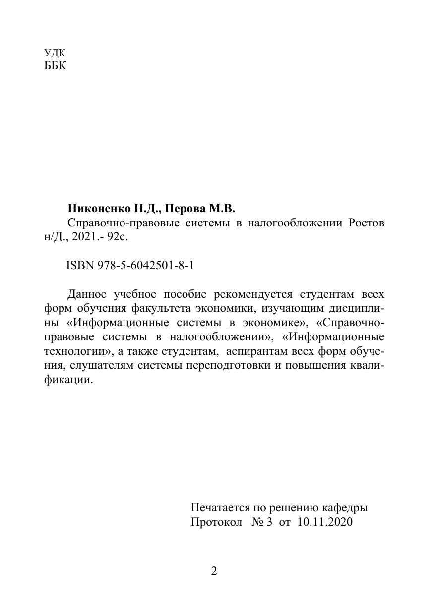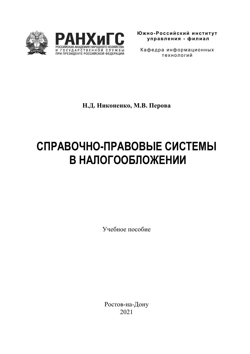 Данное учебное пособие рекомендуется студентам всех форм обучения факультета экономики, изучающим дисциплины «Информационные системы в экономике», «Справочноправовые системы в налогообложении», «Информационные технологии», а также студентам, аспирантам всех форм обучения, слушателям системы переподготовки и повышения квалификации.