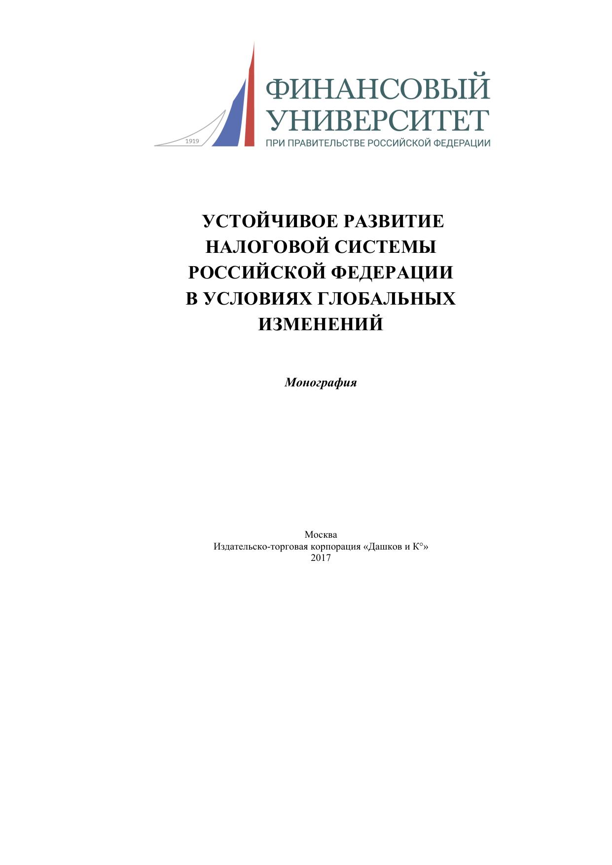 Устойчивое развитие налоговой системы Российской Федерации в условиях глобальных изменений