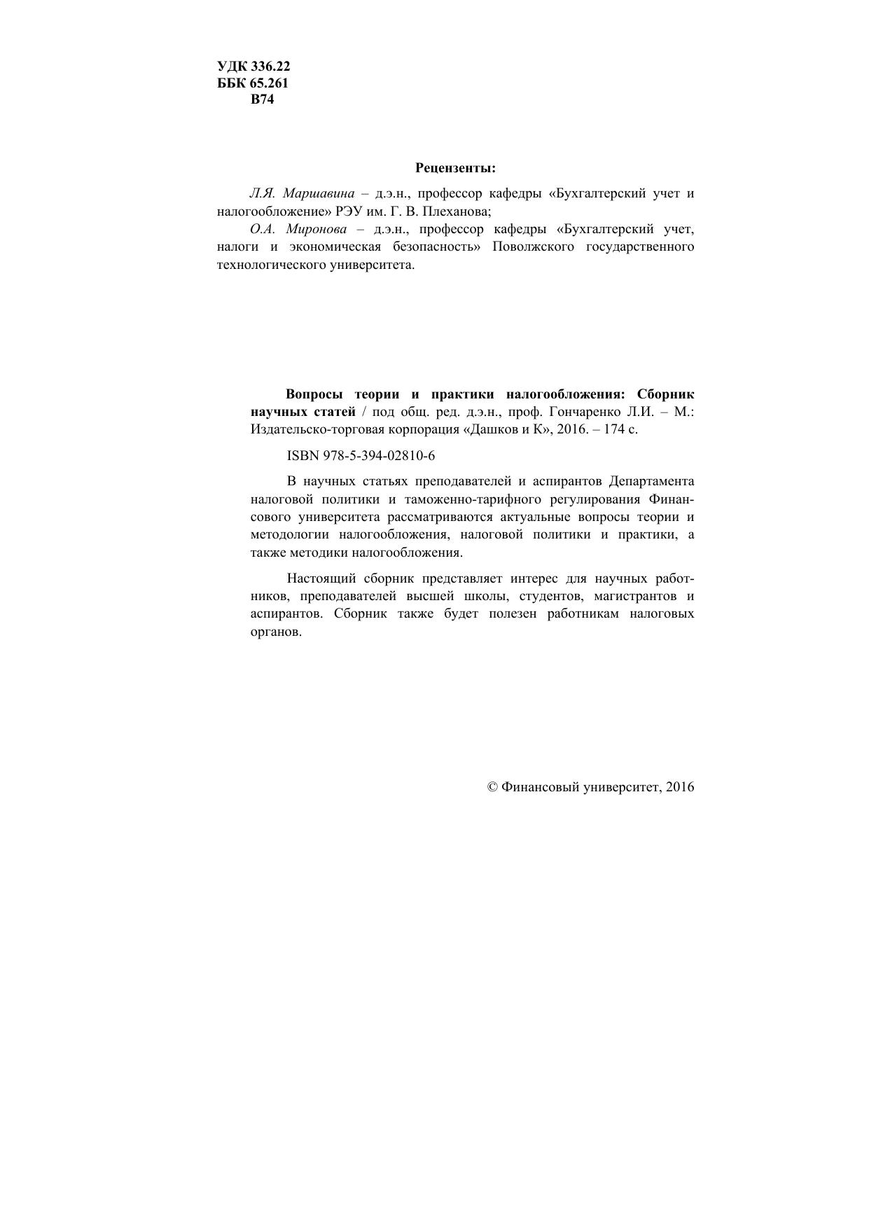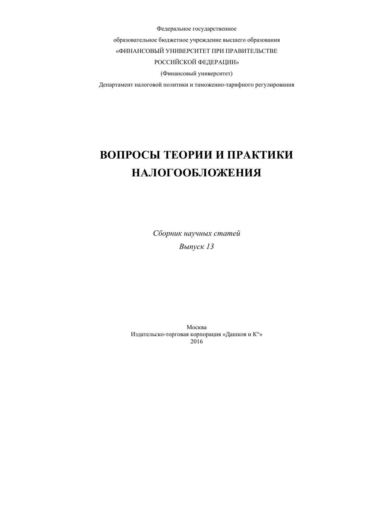 Настоящий сборник представляет интерес для научных работников, преподавателей высшей школы, студентов, магистрантов и аспирантов. Сборник также будет полезен работникам налоговых органов.
