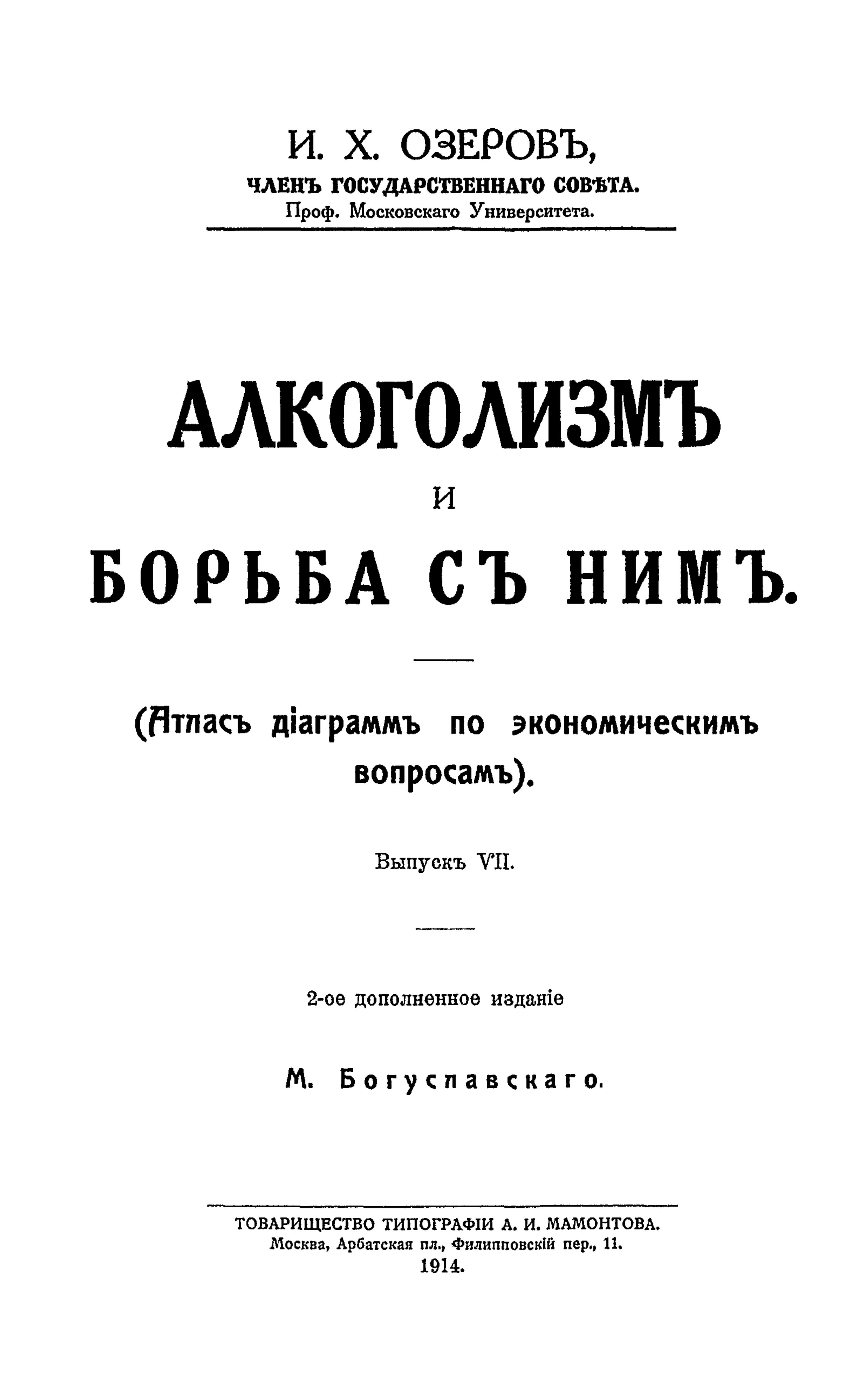 Алкоголизм и борьба с ним (Атлас диаграмм по экономическим вопросам). Выпуск VII