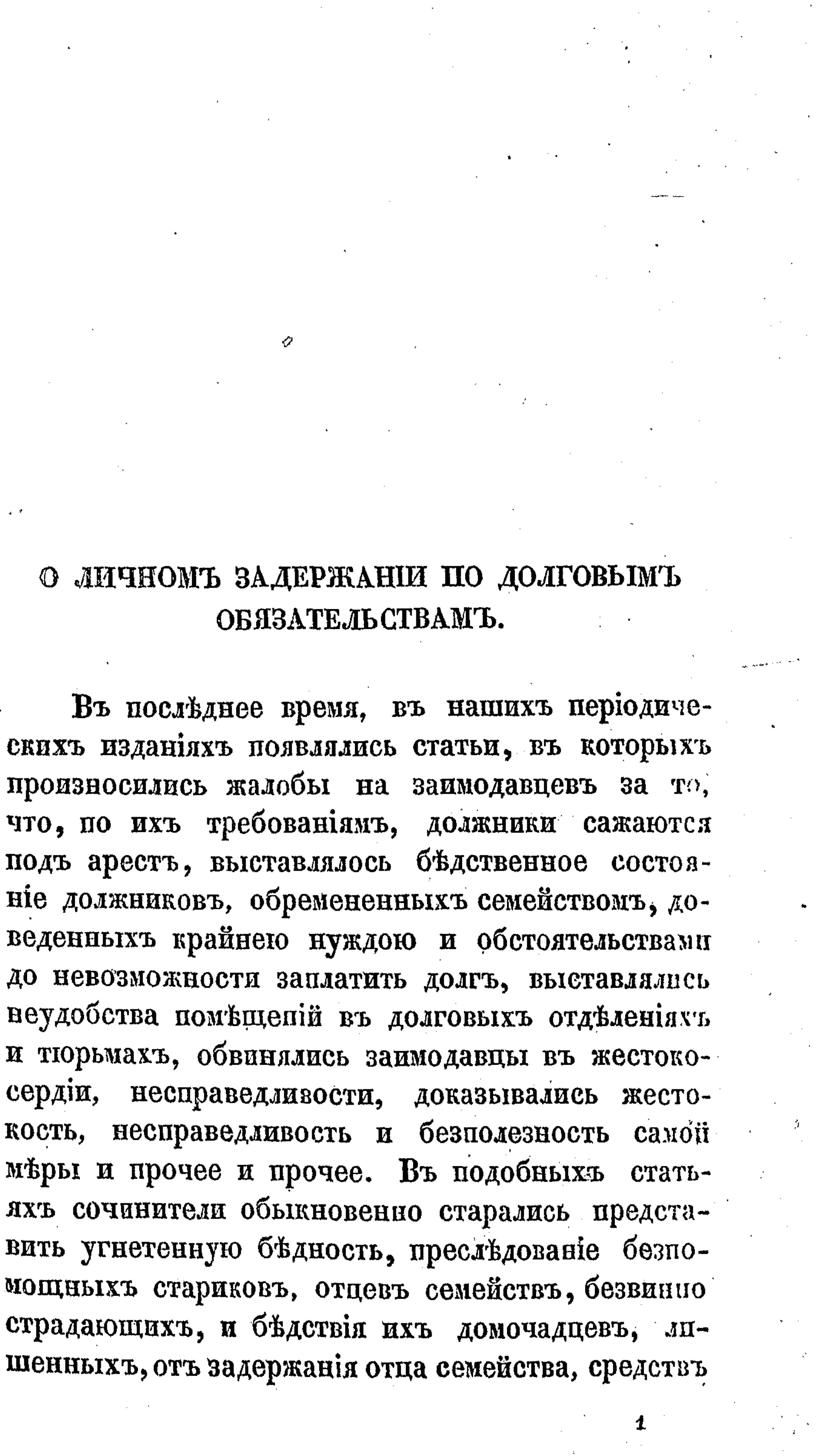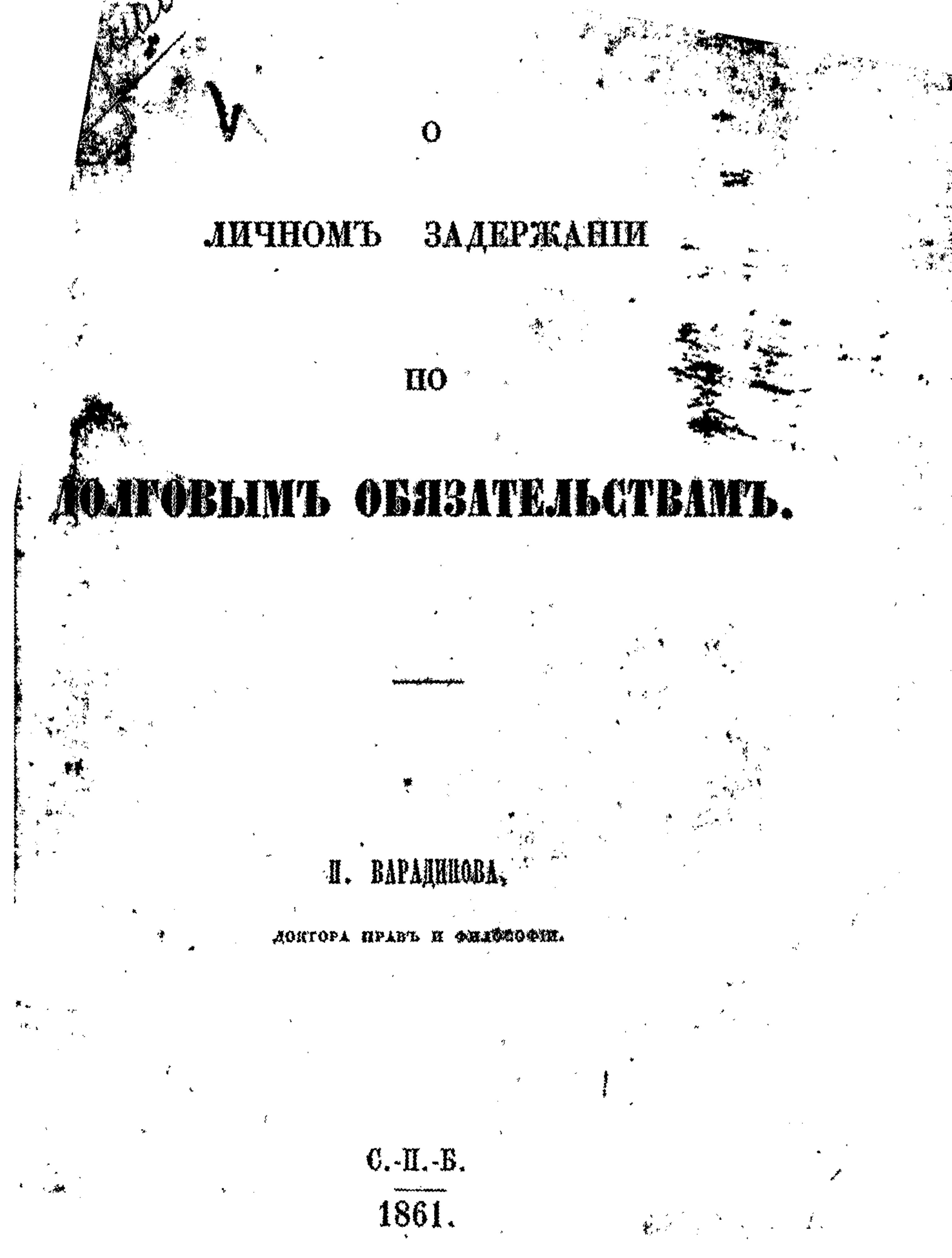 О личном задержании по долговым обязательствам (из журнала Министерства внутренних дел, часть XLIX, отдел II, книга 7,1861 г.)