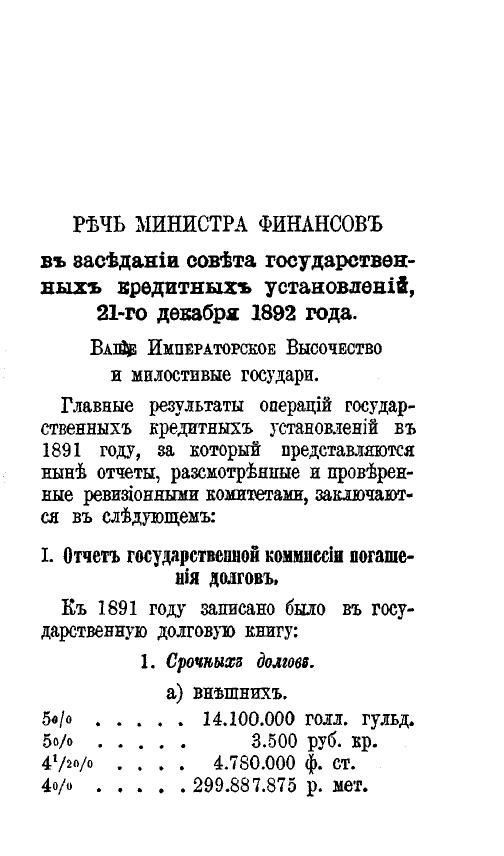 Речь министра финансов в заседании Совета государственных кредитных установлений