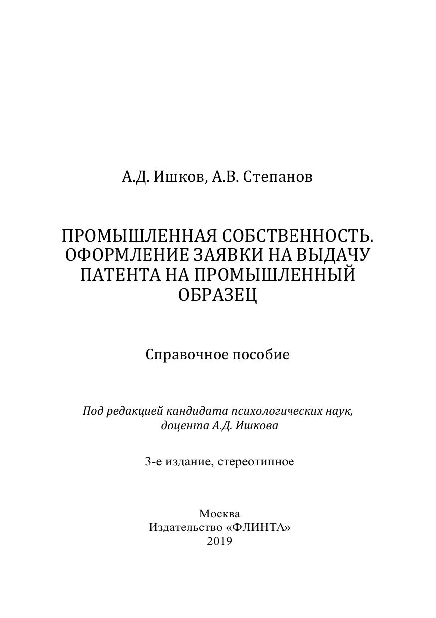 Промышленная собственность. Оформление заявки на выдачу патента на промышленный образец: справ. пособие
