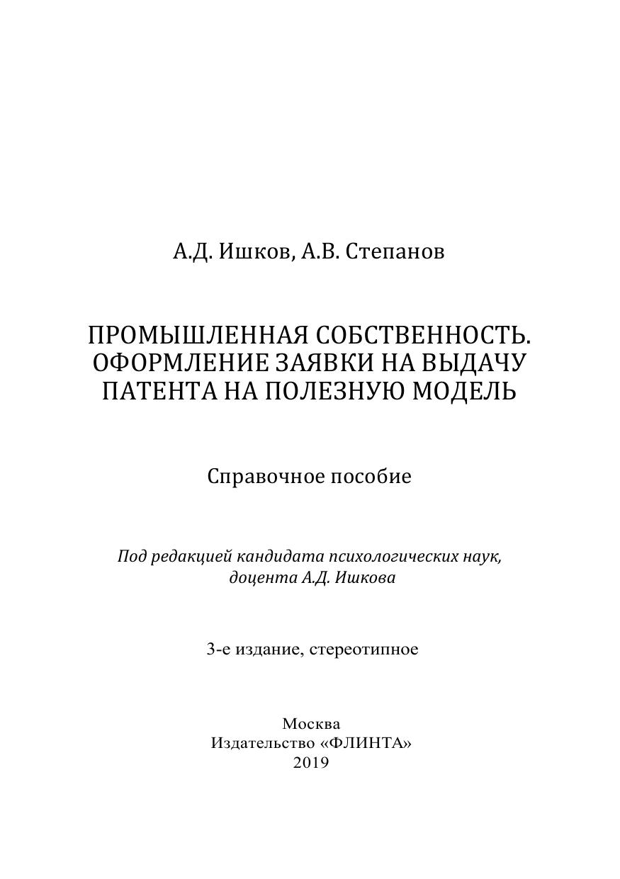 Промышленная собственность. Оформление заявки на выдачу патента на полезную модель: справ. пособие