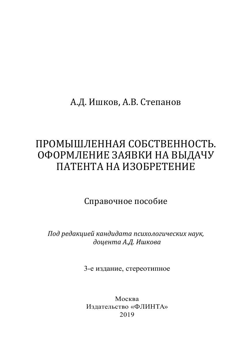 Промышленная собственность. Оформление заявки на выдачу патента на изобретение: справ. пособие