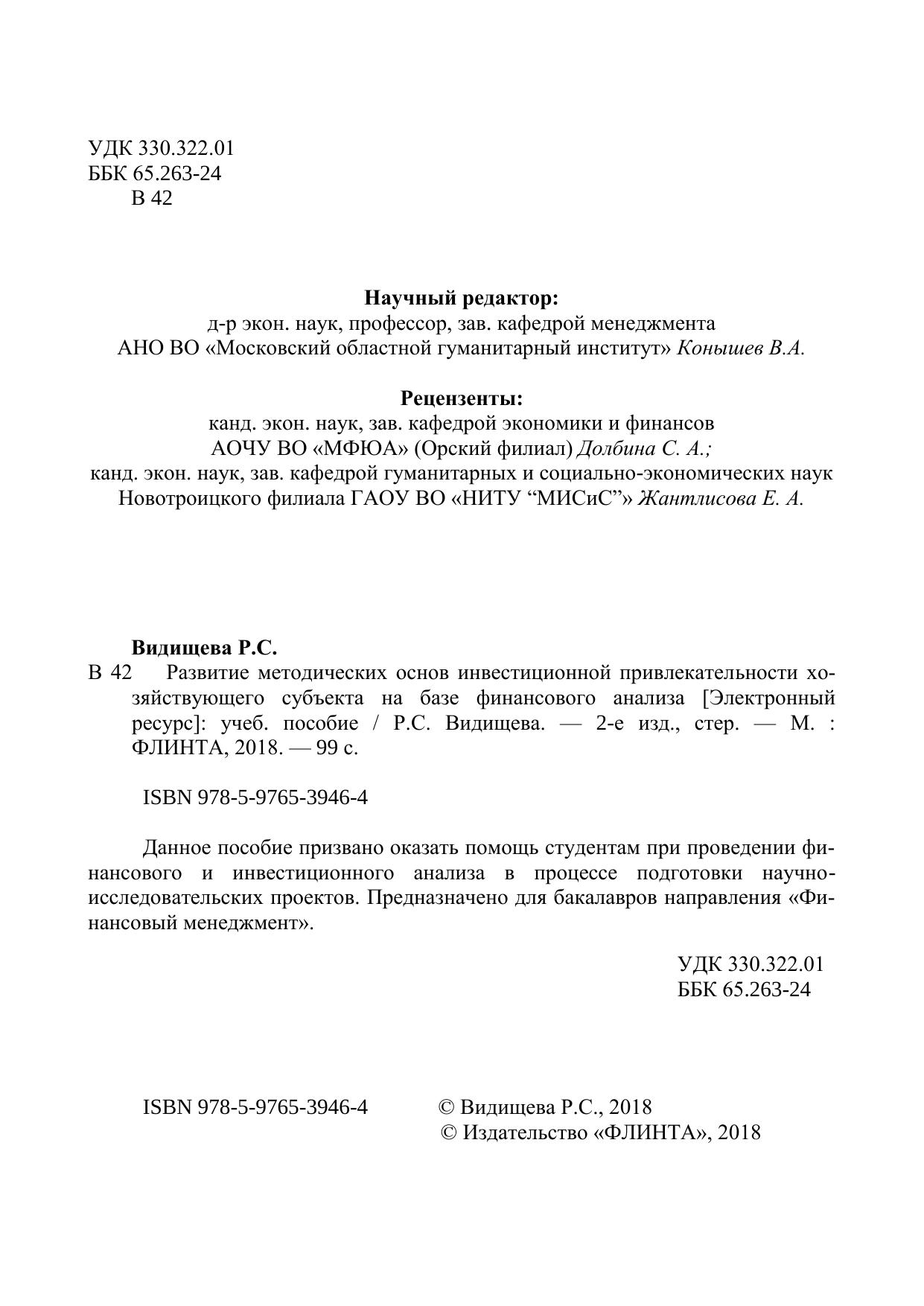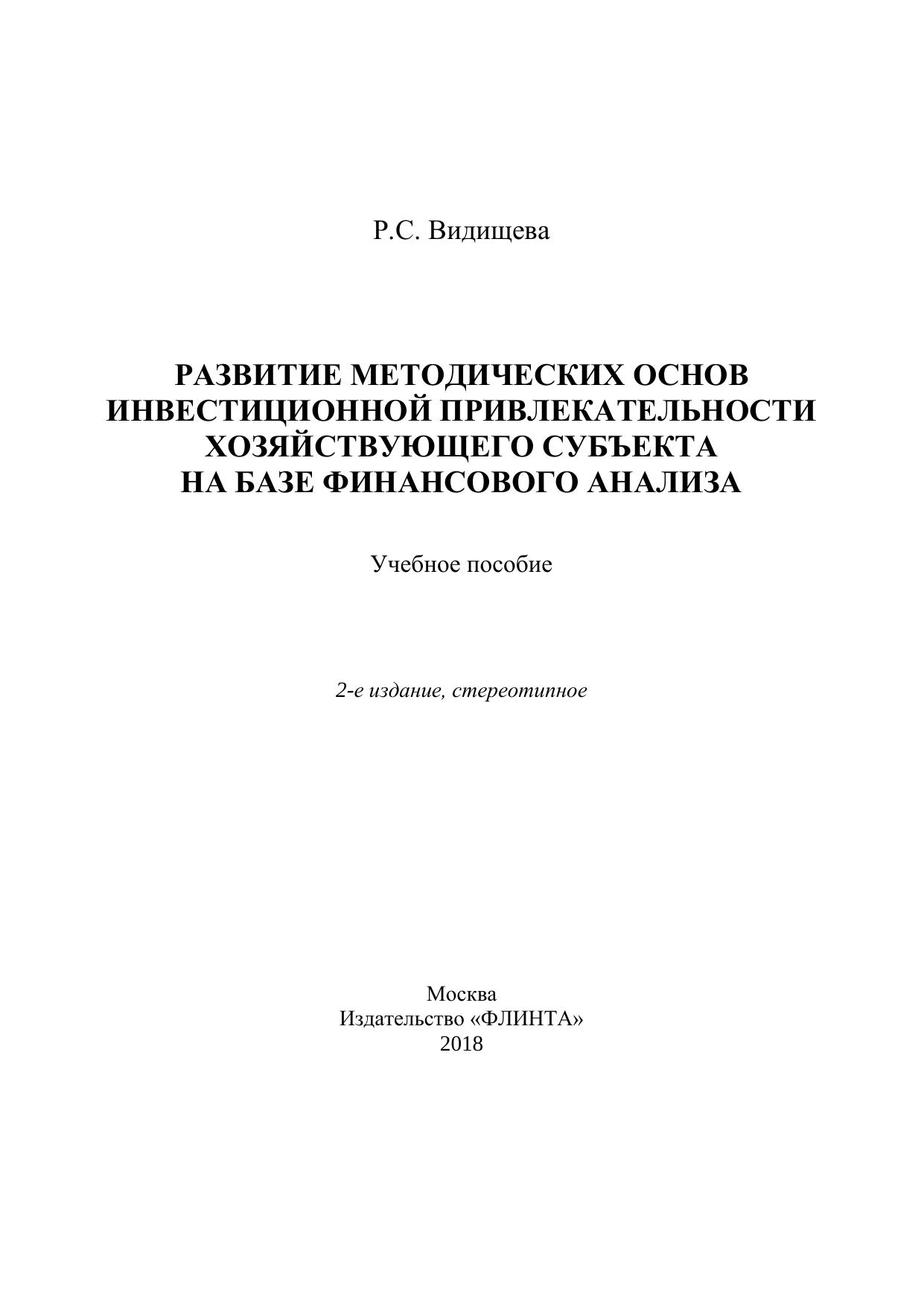 Развитие методических основ инвестиционной привлекательности хозяйствующего субъекта на базе финансового анализа