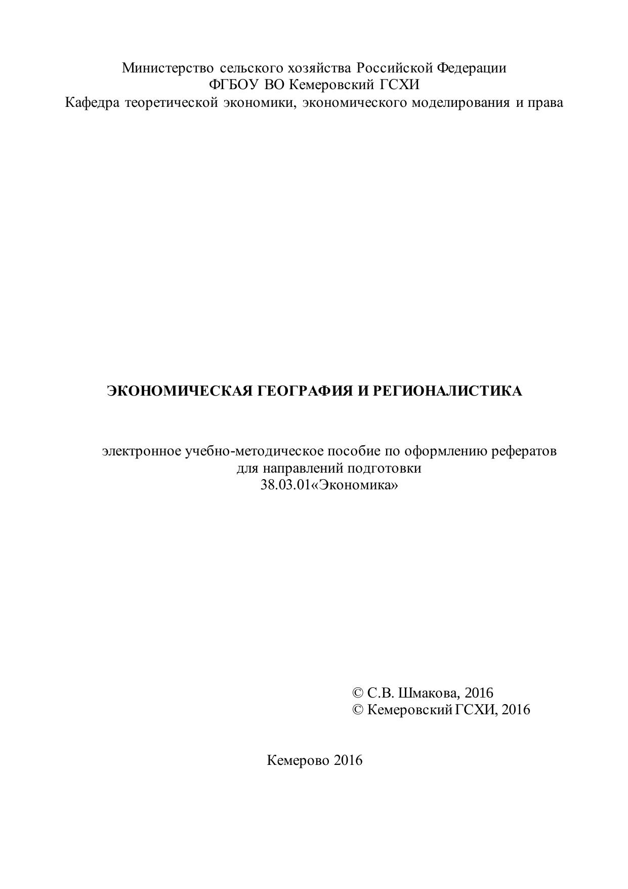 Экономическая география и регионалистика: электронное учебно-методическое пособие по оформлению рефератов для направления подготовки 38.03.01 «Экономика»