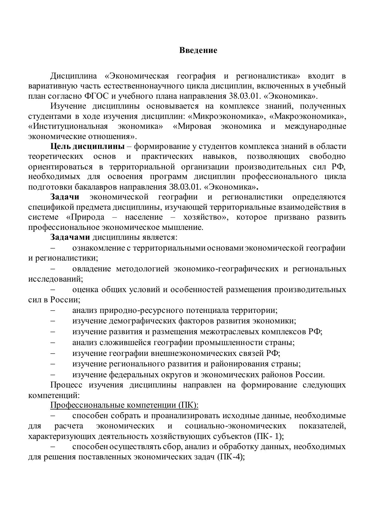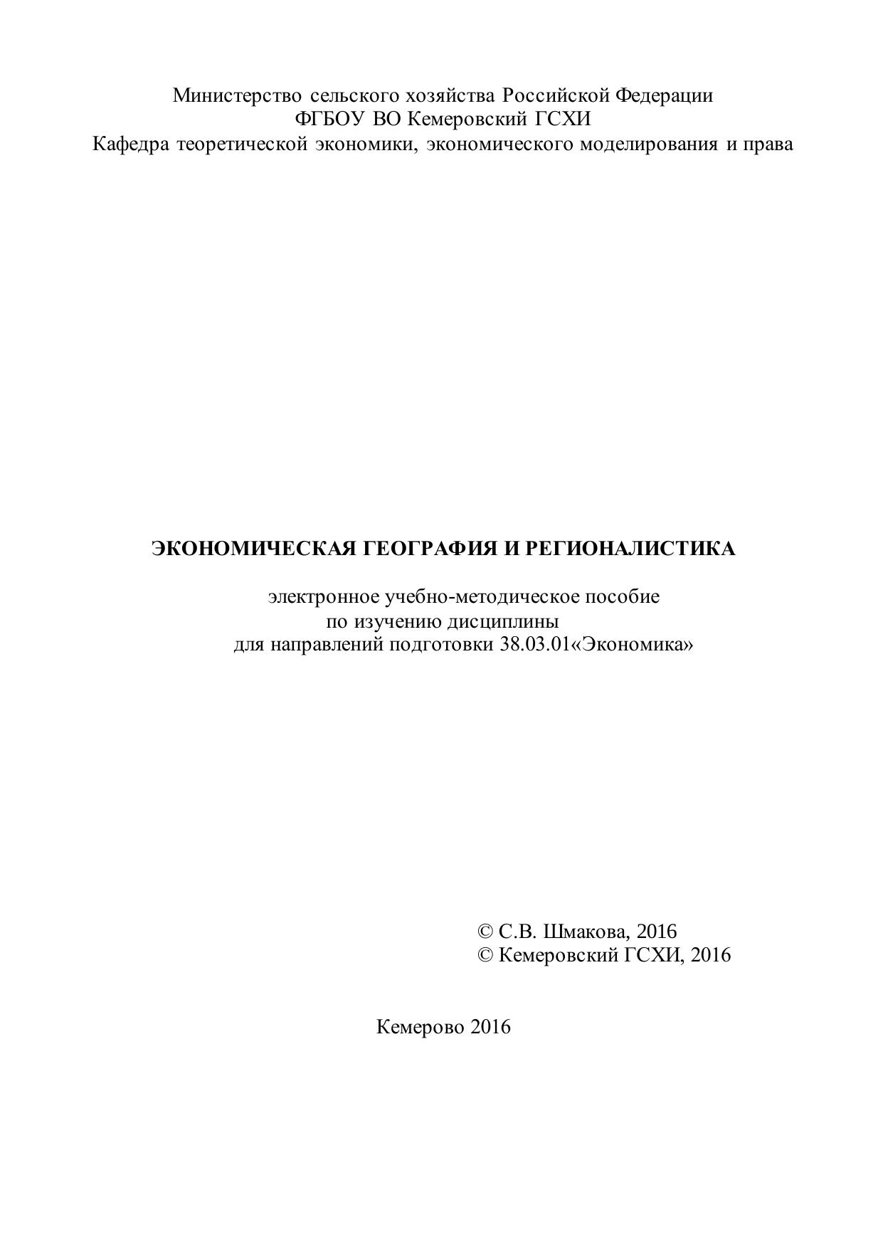 Экономическая география и регионалистика: электронное учебно-методическое пособие по изучению дисциплины для направления подготовки 38.03.01 «Экономика»