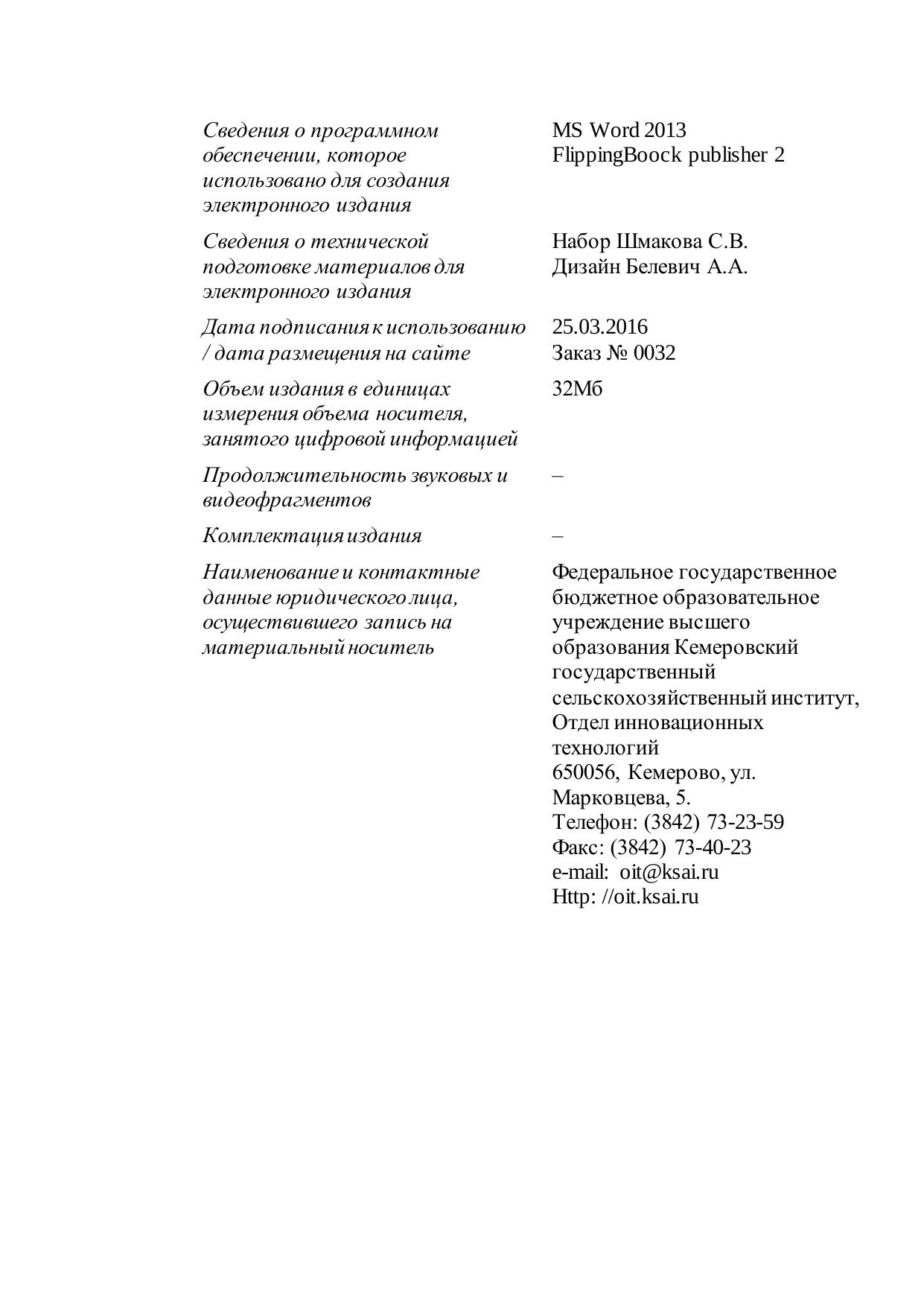 Издательство: Кузбасская государственная селькохозяйственная академия