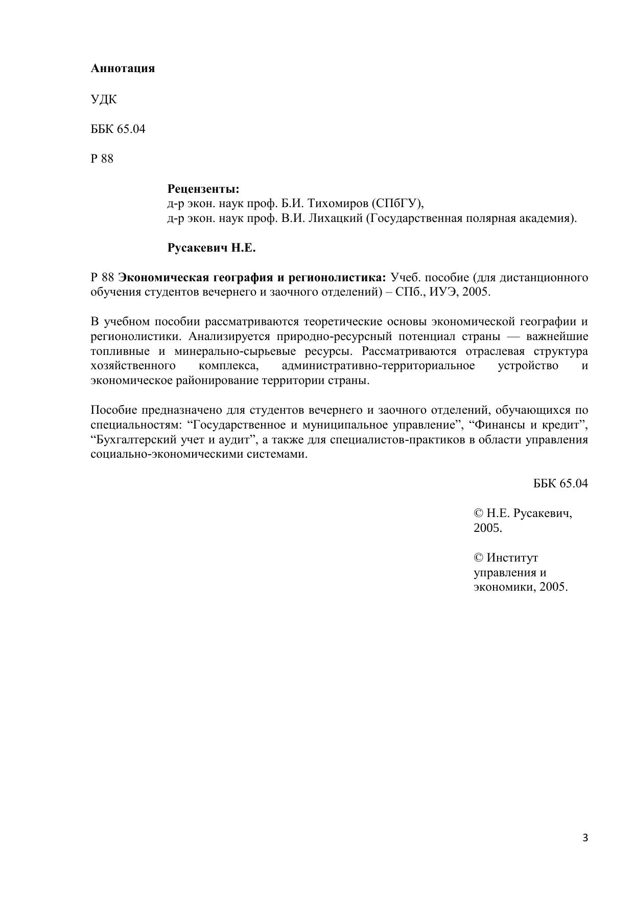 Экономическая география и регионолистика: Учеб. пособие (для дистанционного обучения студентов вечернего и заочного отделений)