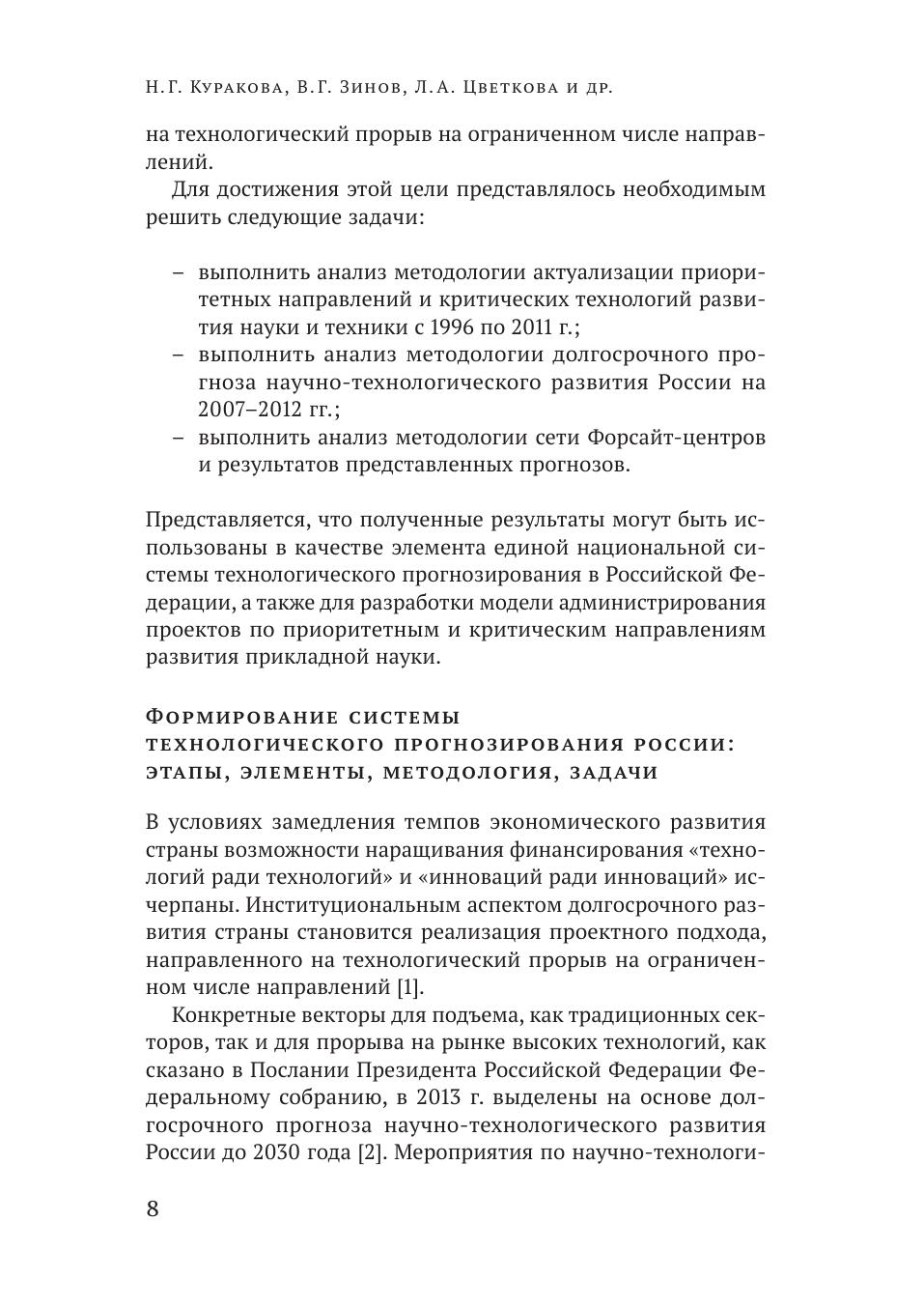 Серия Научные доклады. Рассмотрены элементы, образующие национальную систему технологического прогнозирования в Российской Федерации, а также методология и инструментарий составления долгосрочных прогнозов. Приведены примеры научных направлений, выделенных в качестве приоритетов развития прикладной науки в РФ , создающие риск неэффективного расходования государственных средств ввиду низкого потенциала индустриализации и некорректной оценки конкурентоспособности национальных научных заделов. Проанализирован генезис проблем технологического прогнозирования в РФ , выраженный в смешении функций, задач, методологий и инструментария трех ключевых элементов: долгосрочного прогноза, научно-технологического мониторинга и научно-технологической экспертизы. Предложена методология актуализации приоритетов РФ на основе научно-технологического мониторинга. Полученные результаты могут быть использованы для разработки модели администрирования проектов по приоритетным и критическим направлениям развития прикладной науки