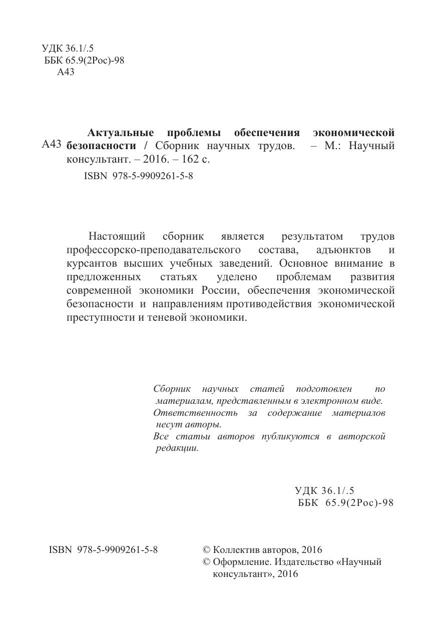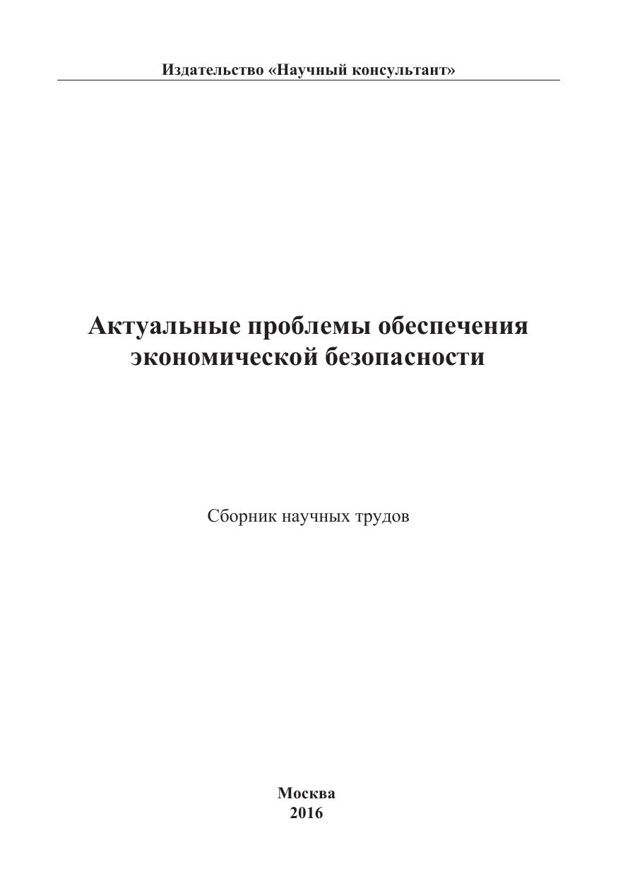 Актуальные проблемы обеспечения экономической безопасности. Сборник научных трудов 2016