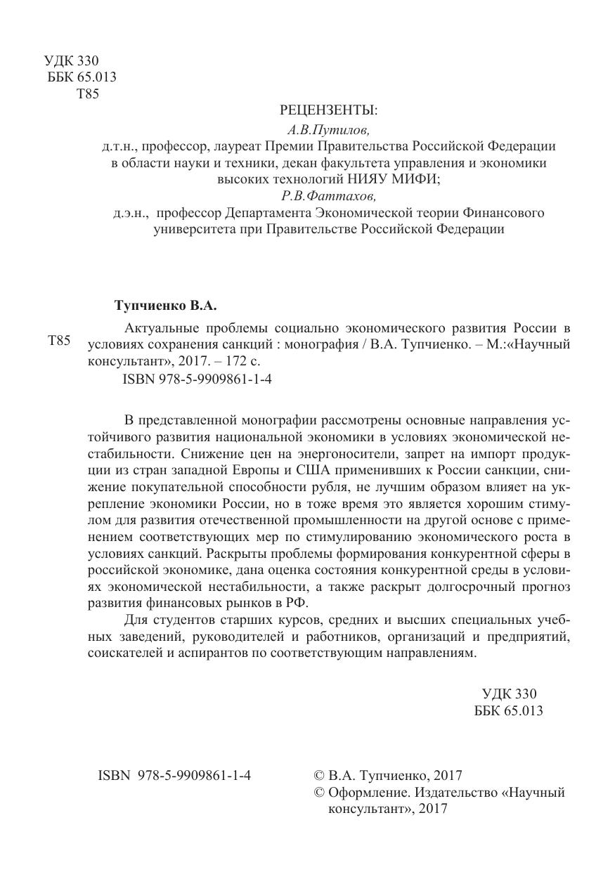 Актуальные проблемы социально-экономического развития России в условиях сохранения санкций
