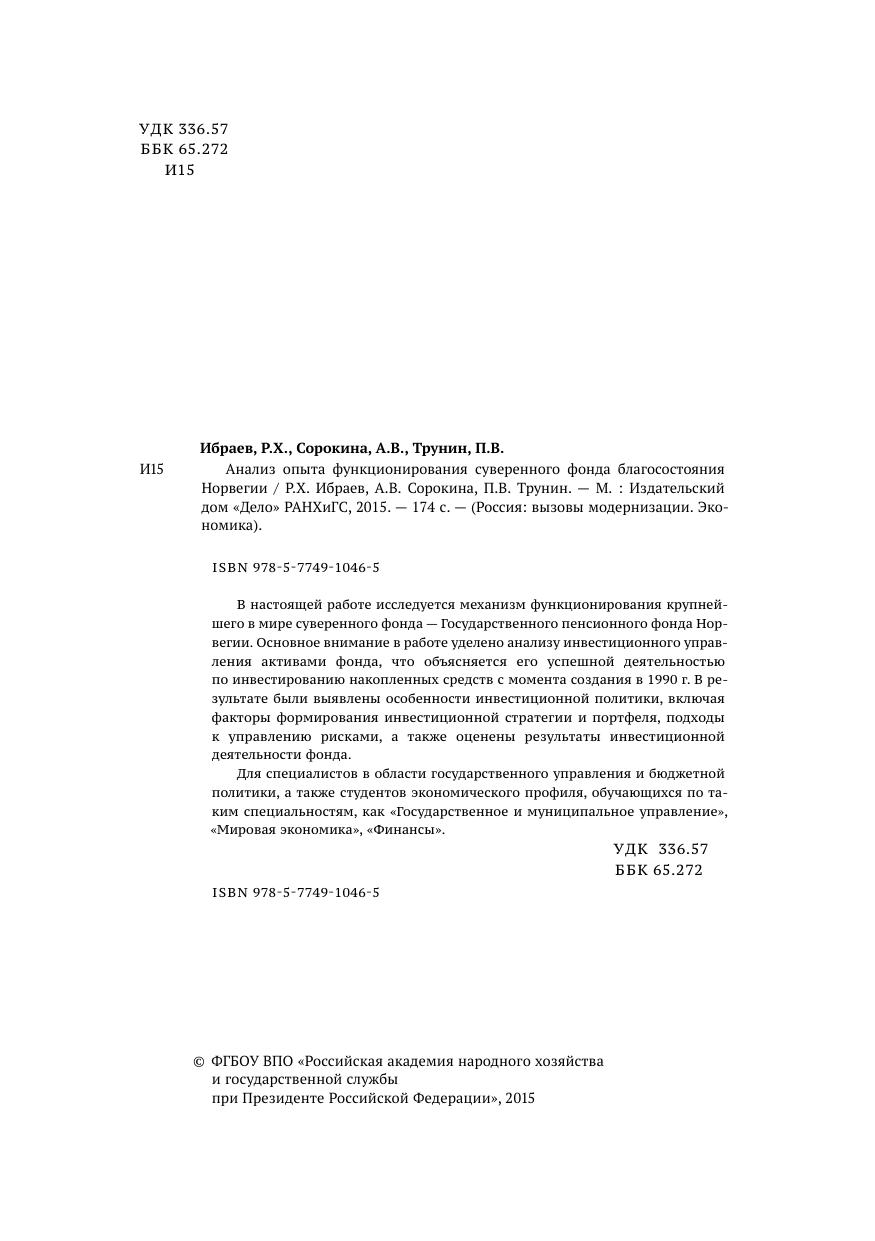 Серия Россия. Вызовы модернизации. Социальная политика. В настоящей работе исследуется механизм функционирования крупнейшего в мире суверенного фонда — Государственного пенсионного фонда Норвегии. Основное внимание в работе уделено анализу инвестиционного управления активами фонда, что объясняется его успешной деятельностью по инвестированию накопленных средств с момента создания в 1990 г. В результате были выявлены особенности инвестиционной политики, включая факторы формирования инвестиционной стратегии и портфеля, подходы к управлению рисками, а также оценены результаты инвестиционной деятельности фонда. Для специалистов в области государственного управления и бюджетной политики, а также студентов экономического профиля, обучающихся по таким специальностям, как «Государственное и муниципальное управление», «Мировая экономика», «Финансы».