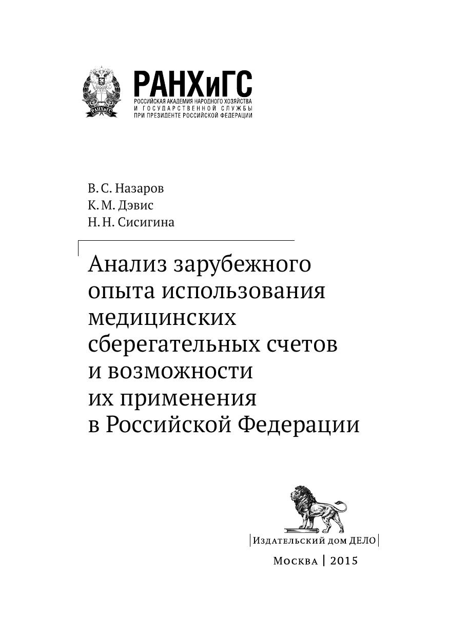 Анализ зарубежного опыта использования медицинских сберегательных счетов и возможности их применения в Российской Федерации