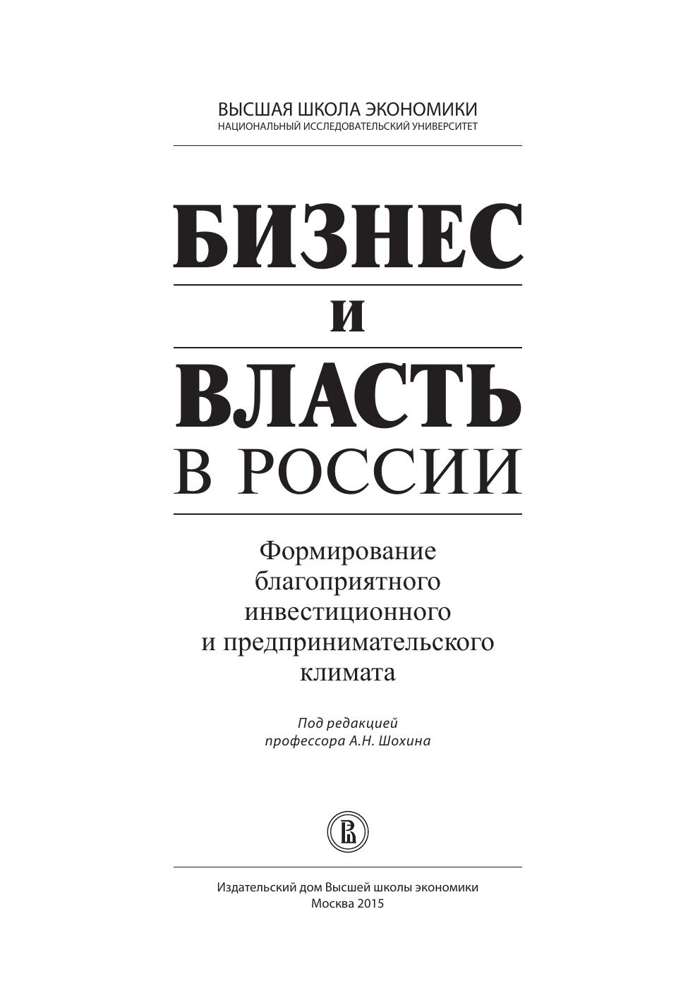 Бизнес и власть в России: формирование благоприятного инвестиционного и предпринимательского климата