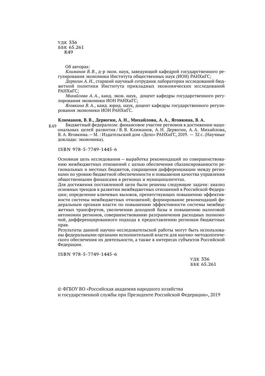 Авторы: Климанов В. В., Дерюгин А. Н., Михайлова А. А., Яговкина В. А.
