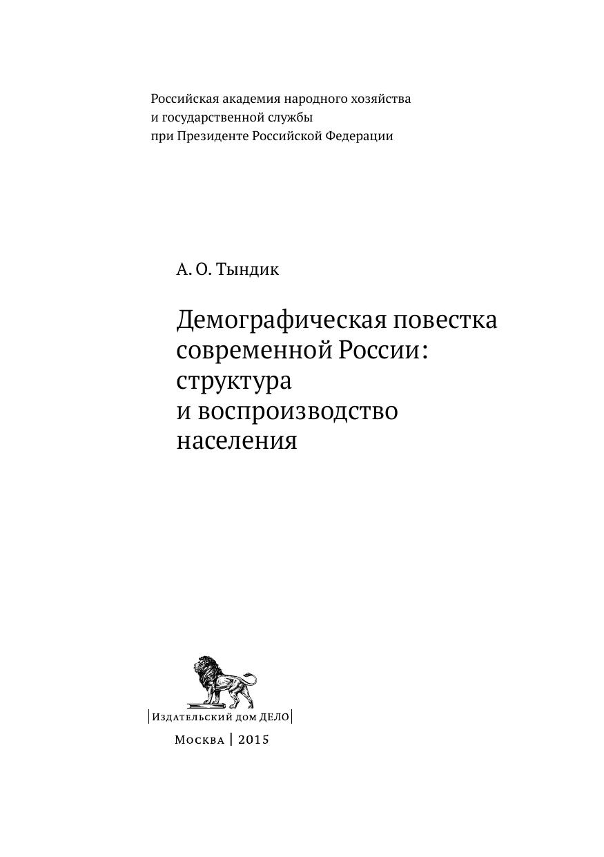 Демографическая повестка современной России: структура и воспроизвод ство населения