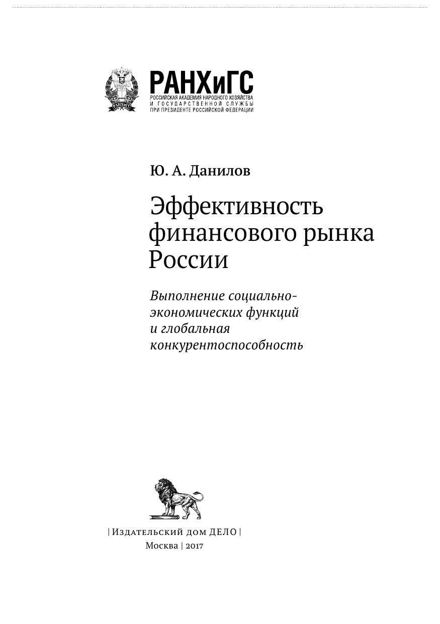 Эффективность финансового рынка России: выполнение социально-экономических функций и глобальная конкурентоспособность