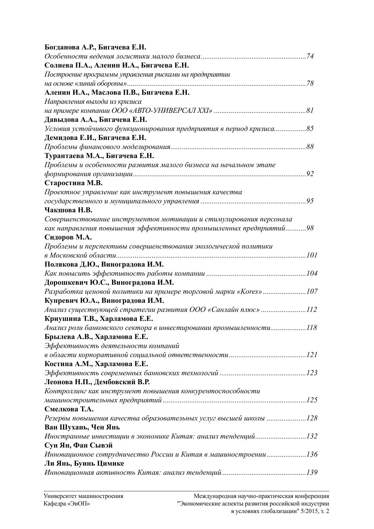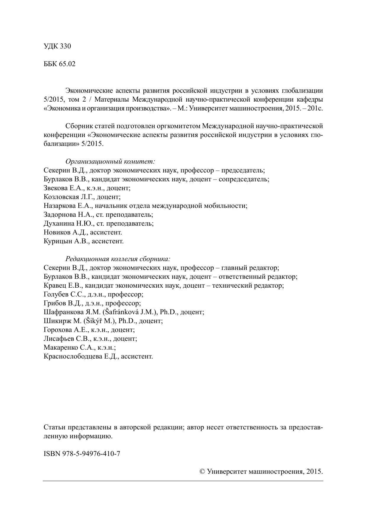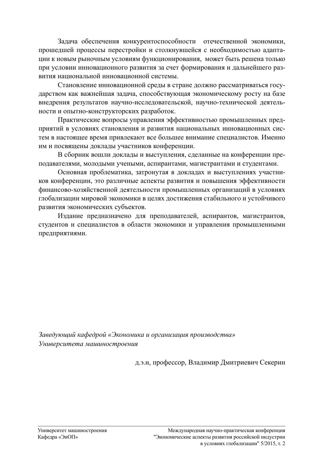 Экономические аспекты развития российской индустрии в условиях глобализации 5/2015. Том 2. Материалы Международной научно-практической конференции кафедры «Экономика и организация производства»