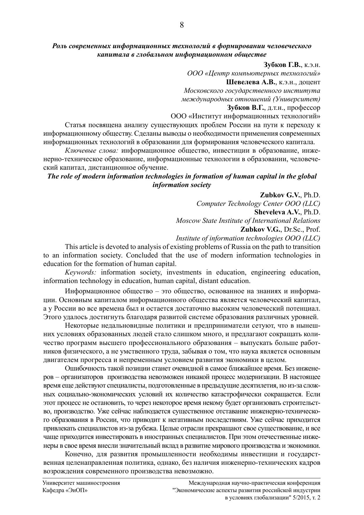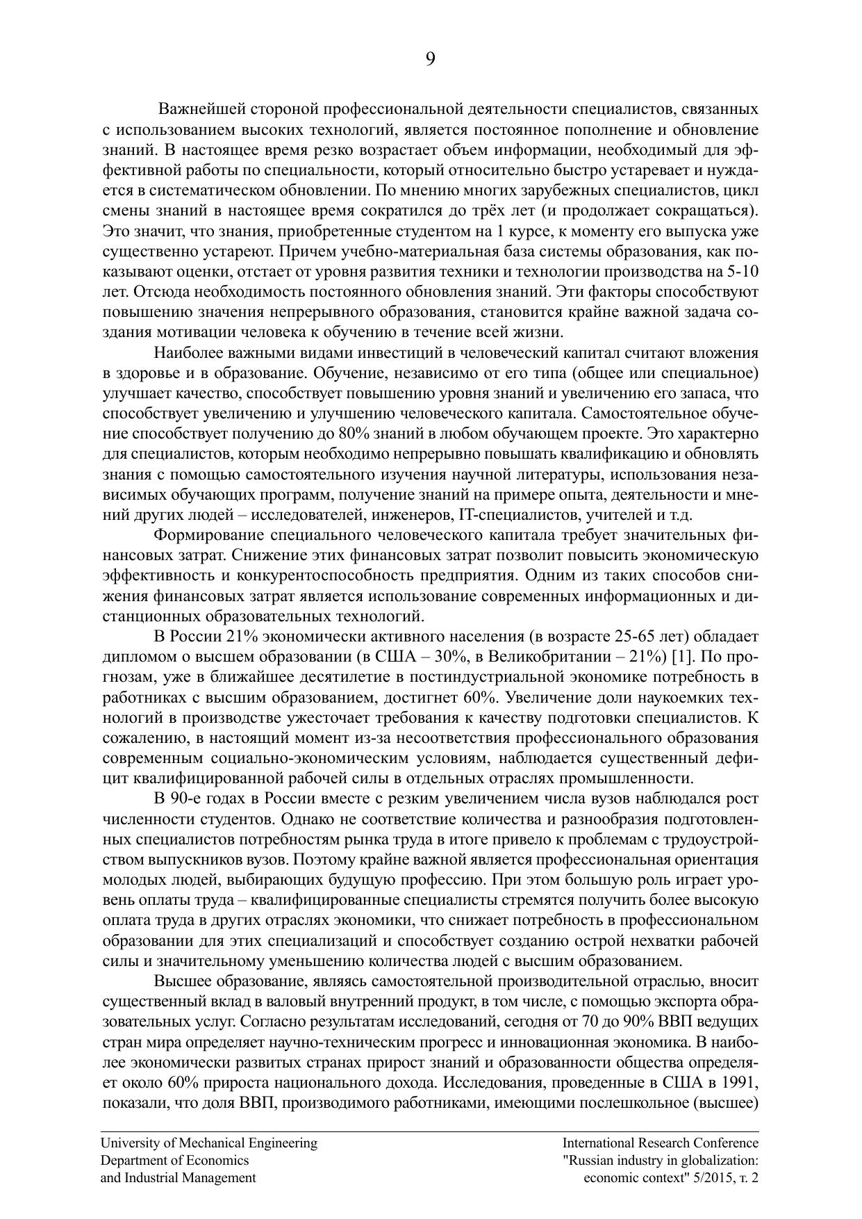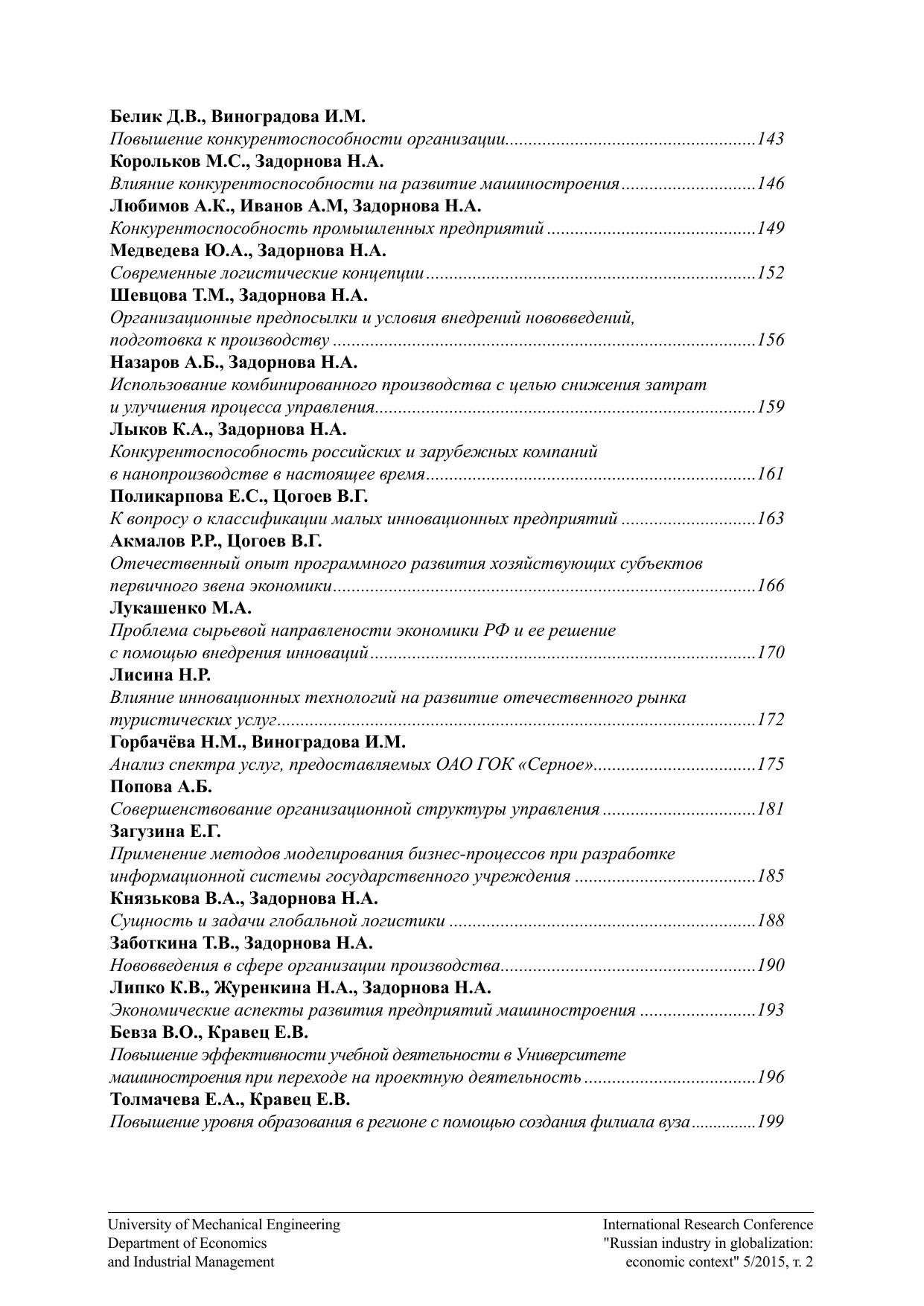 Экономические аспекты развития российской индустрии в условиях глобализации 5/2015. Том 2. Материалы Международной научно-практической конференции кафедры «Экономика и организация производства»