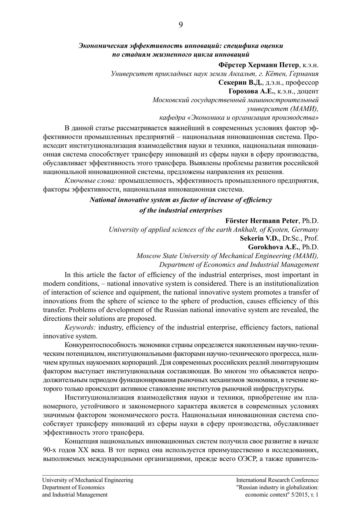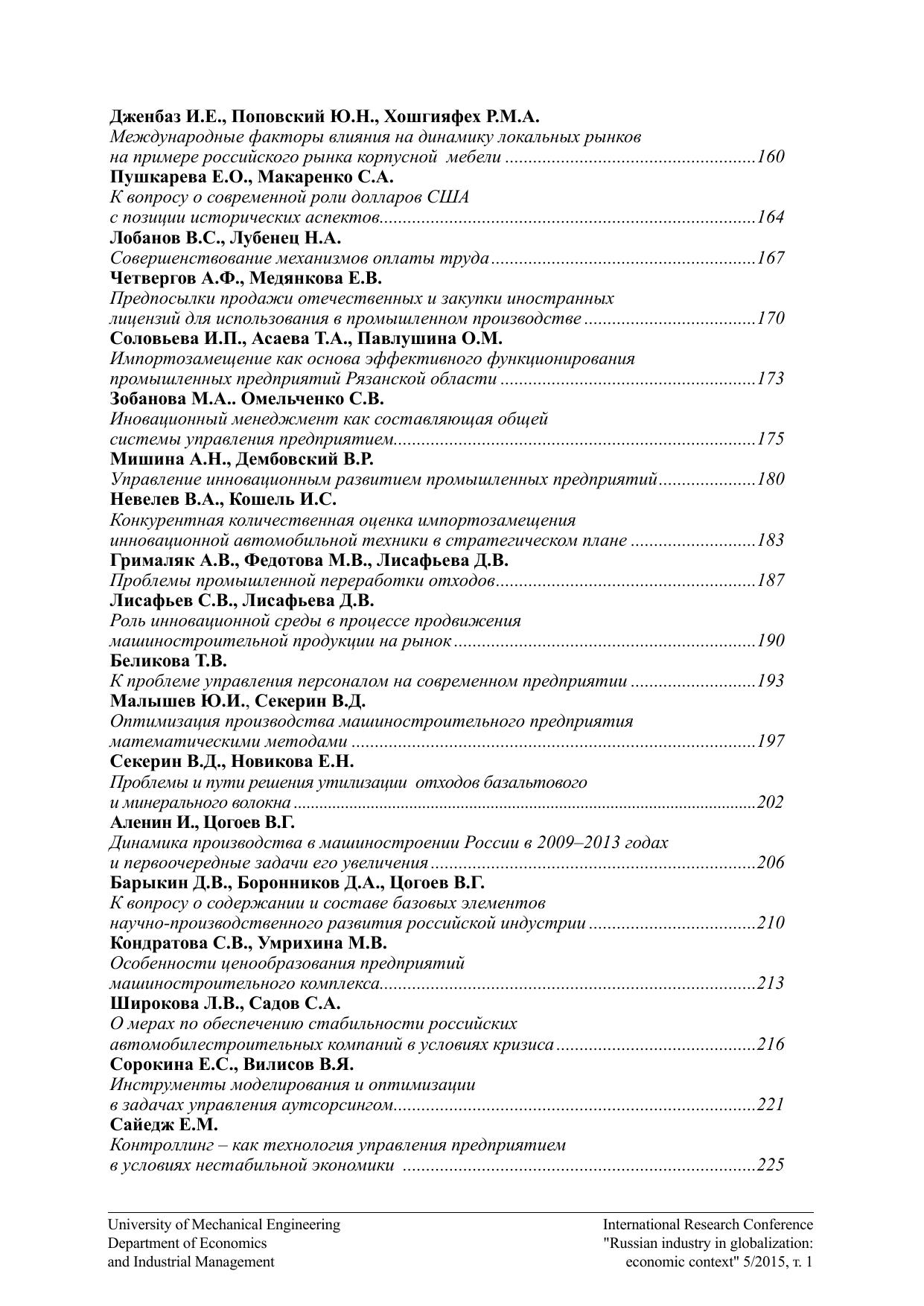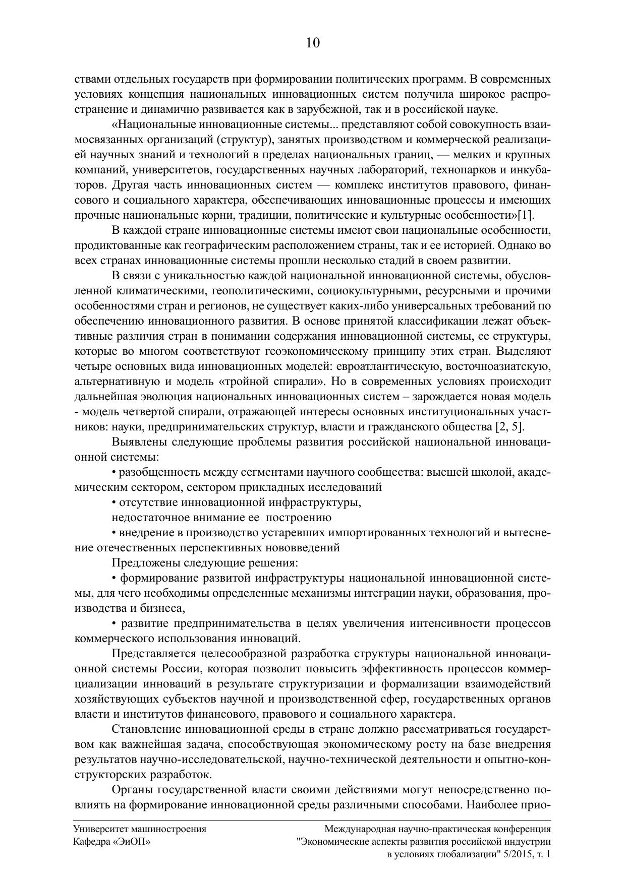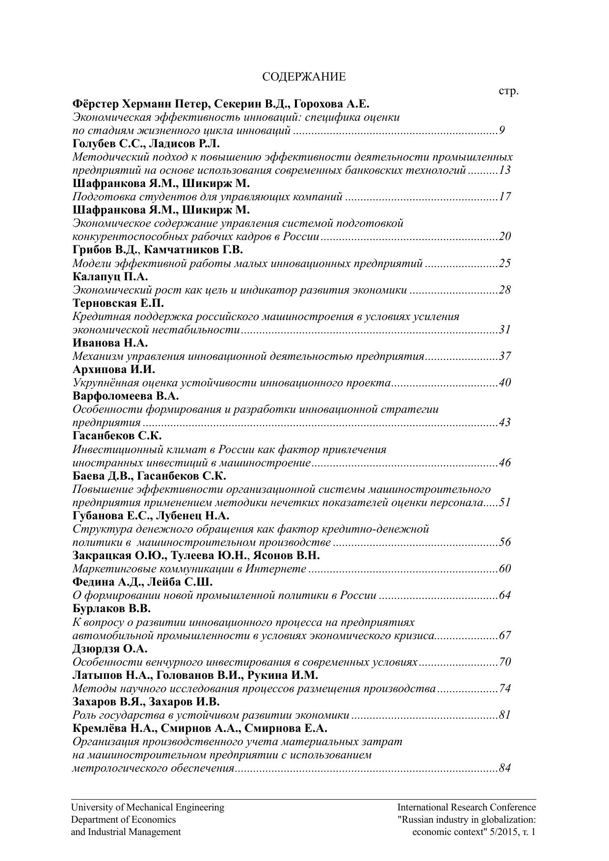 Экономические аспекты развития российской индустрии в условиях глобализации 5/2015. Том 1. Материалы Международной научно-практической конференции кафедры «Экономика и организация производства»